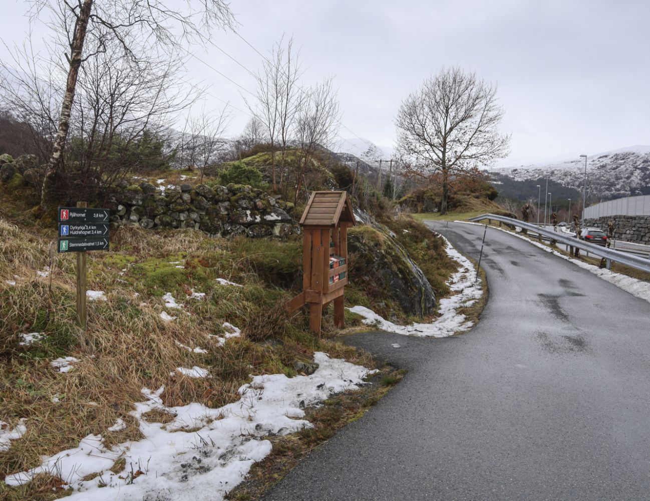 Følg vegen 0,6 km til parkering ved Stemmedalen Vassverk. Ver vennleg og parker der det er merka turparkering.