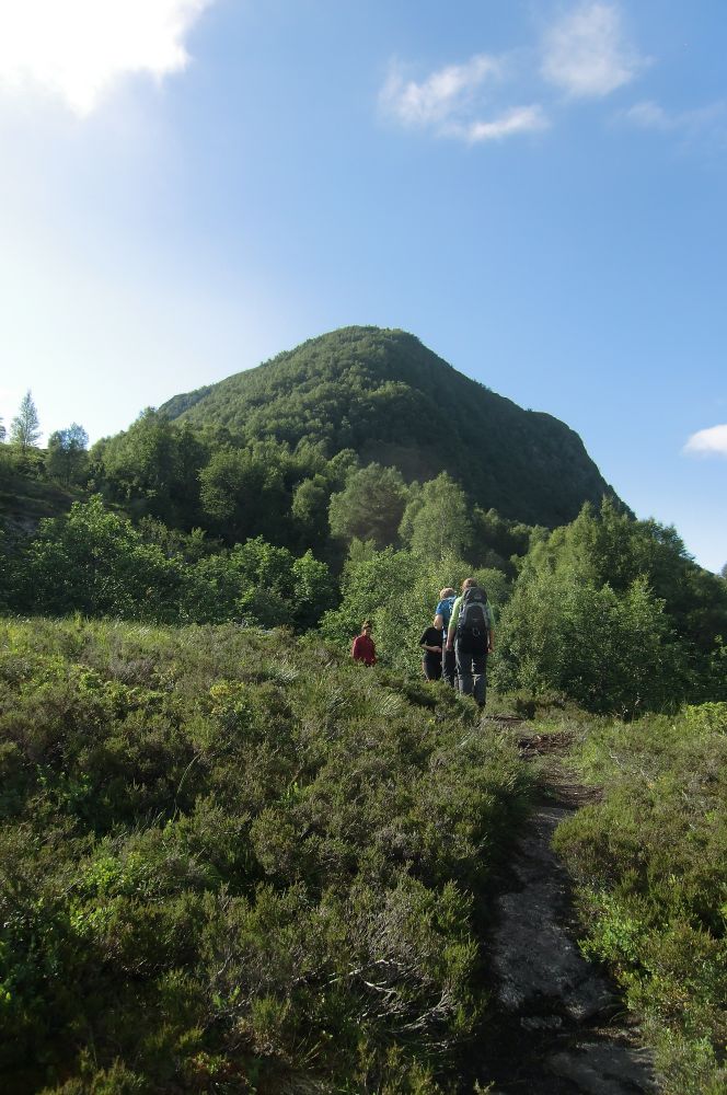 Frå bommen følg skogsvegen i om lag 500 m. Ta av til høgre der vegen deler seg. Etter nye 600 m tek du av inn på stien. Stien er tydeleg mot nordvest langs den kuperte fjellryggen. Bratte parti før du passerer skoggrensa, like før toppen.