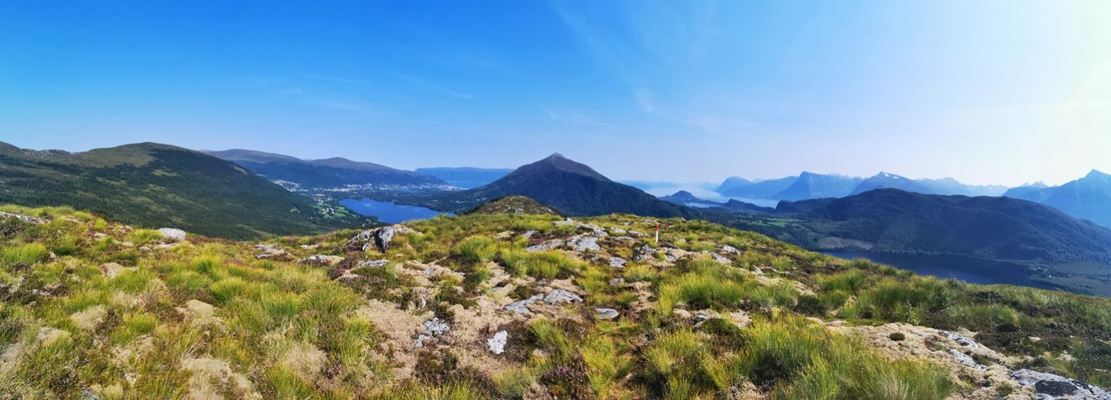 Turen starter med skog rundt, og går vidare i åpent fjelllandskap. Flott utsikt i alle retningar.