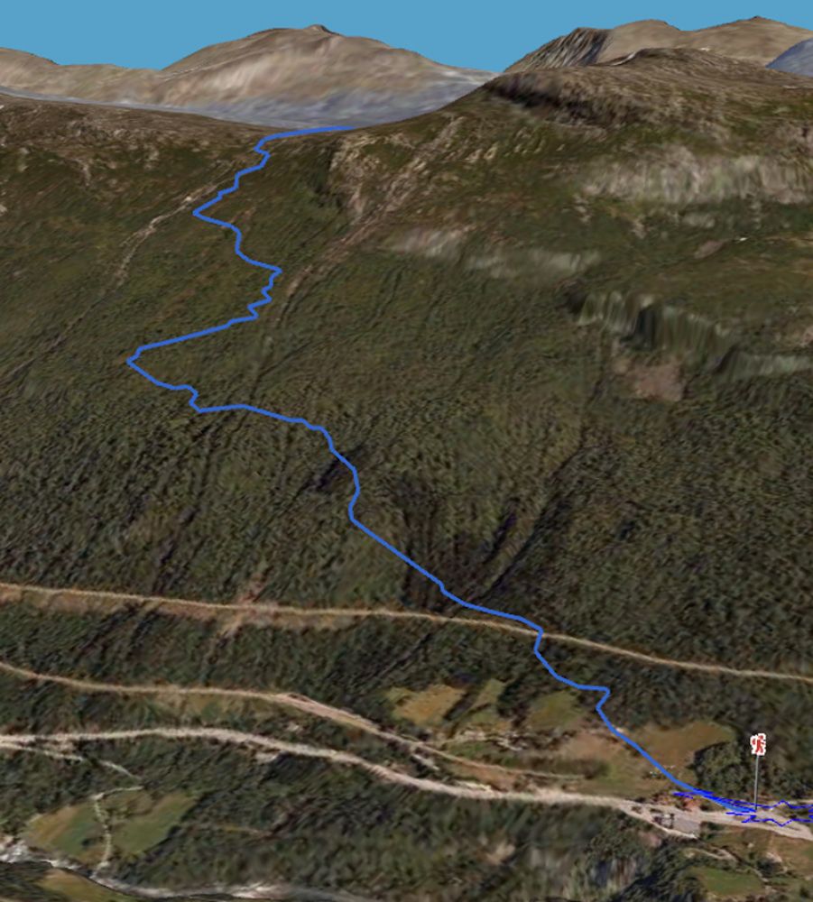 Herfra er det mulig å følge den gamle ridevegen videre flatt innover til en møter vegen som går innover Sandgrovbotnen.
