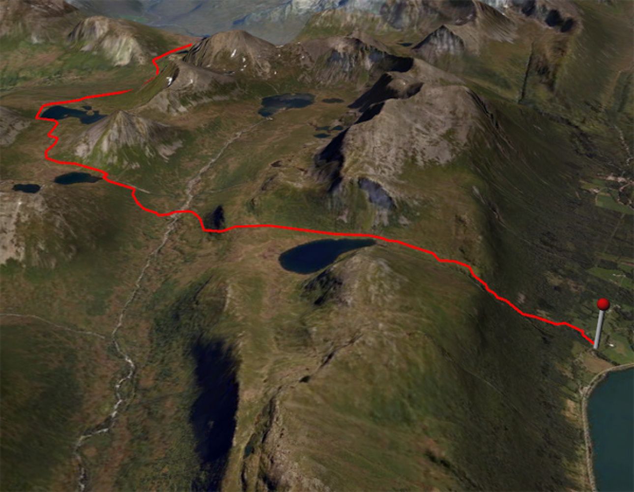 Parker ved traktorveg som tar opp ved elva i Breivika (merket med turskilt). Følg traktorvegen så langt denne går, og deretter sti som slynger seg bratt oppover lia til høyre for elva. Når terrenger legger seg følger stien venstrekanten av en mur opp til Breiviksetra. Fortsett forbi disse og opp til Breivikvatnet. Stien går videre innover til høyre for vatnet og ned til Ingridsetra. Kryss dalen og opp tverrdalen på motsatt side til Såtskarvatnet. Stein går til høyre for vatnet, og tar til høyre opp i Såtskaret etter vatnet. Fortsett ned til Såtvatnet og følg stien til venstre for vatnet. I enden av vatnet ta til høyre mot Svartevatnet og til venstre igjen før Svartevatnet, ned til stien i Måsskardet. Herfra følges stien fra Skrokkensetra til Måsvassbu , til venstre for Måsvatnet. Kilde: