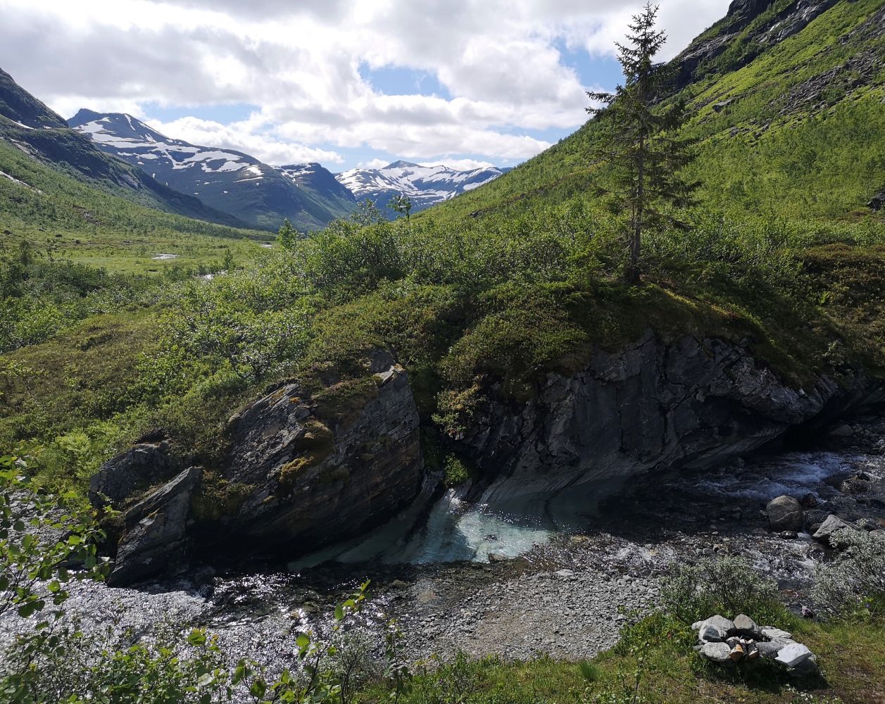 Noko av det unike med dette området, i tillegg til det reint idylliske, samt forekomstane av bergartane marmor/kalkstein, olivin og glimmerskifer, er det mangfaldige plantelivet. I berget veks det m.a. raudsildre, gulsildre, rukkevier og mosen Ortothecium rufescens. På elvekanten like nordom turmålet veks det rikeleg mengder av skavgras og også det sjeldne hybridet mellom skavgras og fjellsnelle.
