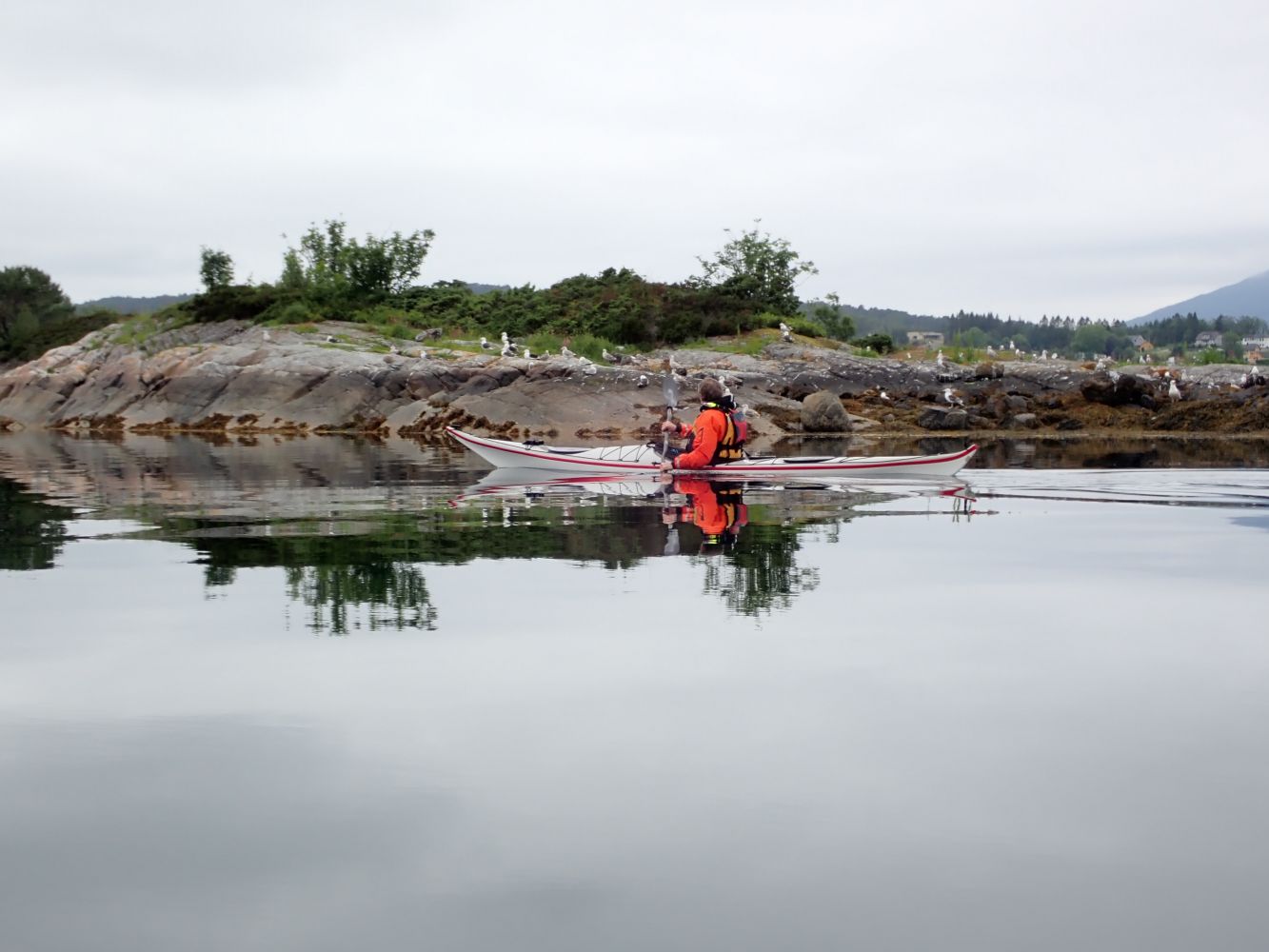 Padle ut og rundt småbåthamna og mot Gåseidholmane. Der setter du kursen nordover og kryssar over sundet mot Larsgården. Padle austover vidare langs land til du kjem til neset og ser Svinøya og Svinøyholmane. Sett kursen mot sørsida av Svinøyholmane og kryss fjorden. Her kryssar du skipsleia for nyttetransport til mellom anna Breivika/Olsvika. Når du passerer Svinøyholmen padlar du vidare langs øya til du nærar deg Sommarneset. Der kryssar du over til sørsida av Kalven, ei mindre øy, før du fortsetter vidare langs sørsida av Lille Kalvøya. Når du kjem lengst aust på Lille Kalvøya ser du Vikholmen i nord-aust og Langøya med to mindre øyer, Kavringen og Fangstholmen, i aust. Kryss rett austover og padle langs sørsida av Langøya. På austsida av Langøya kryssar du eit lite sund over til Årsetneset på Ellingsøya. Fortsett austover langs land til du ser brua over Taftasundet. Det er periodevis sterk tidevasstraum i Taftasundet. Kryss forbi Roteflua til Maurholmen også nordaustover til Maurneset og sikt inn mot eit einsleg naust. Støa og naustet er privat, men resten av området er statleg sikra. Gjer vel og legg kajakkane utanom det private området.