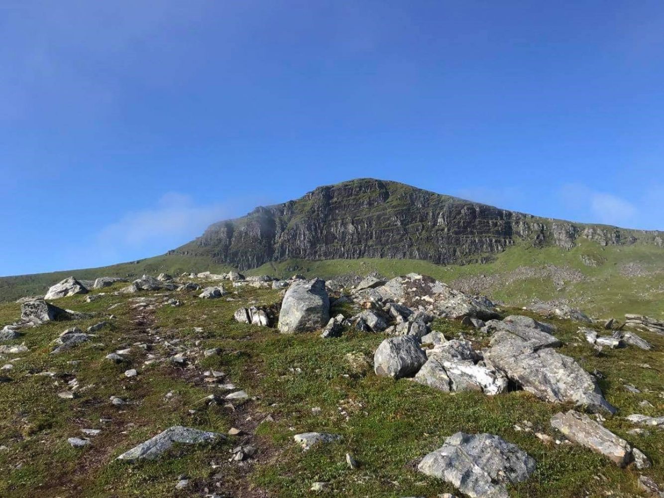 Oppe på ranken har du Melvatnet til høgre. Her kan du velge om du vil ta turen ned til Melvassbu, ei lita steinhytte som ligger ved Melvatnet. Vi vil anbefale at du tar turen nedom. Du kan lufte føttene dine i relativt friskt fjellvann. Og du kan sitte i hytteveggen, se oppover til toppen av Melen og nyte livet. Turen herfra går på venstre sida av Melen og følger kanten helt opp. Det er litt bratt på slutten, men premien er en utsikt som bare havnære fjell kan gi deg (768 moh).
