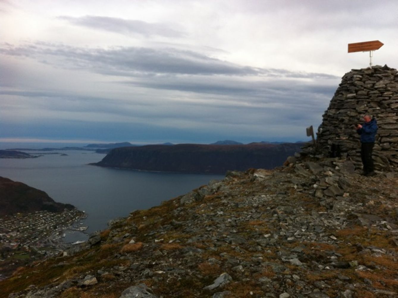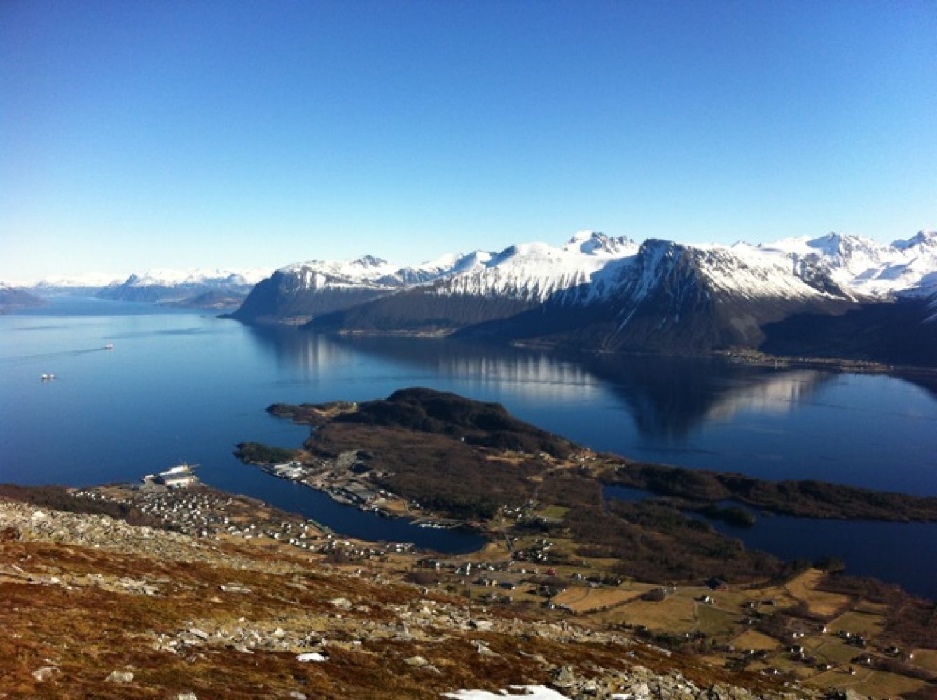 På toppen har du ei vid og flott utsikt i alle retningar. Mot vest Ulstein og øyane i Herøy, mot nord Breisundet og Nordøyane, mot aust inn Storfjorden mot Ørskog og mot sør Vartdalsfjella og Sunnmørsalpane. Ei flott sikteskive viser namna på dei fleste fjelltoppane. Her står og ein stor varde.