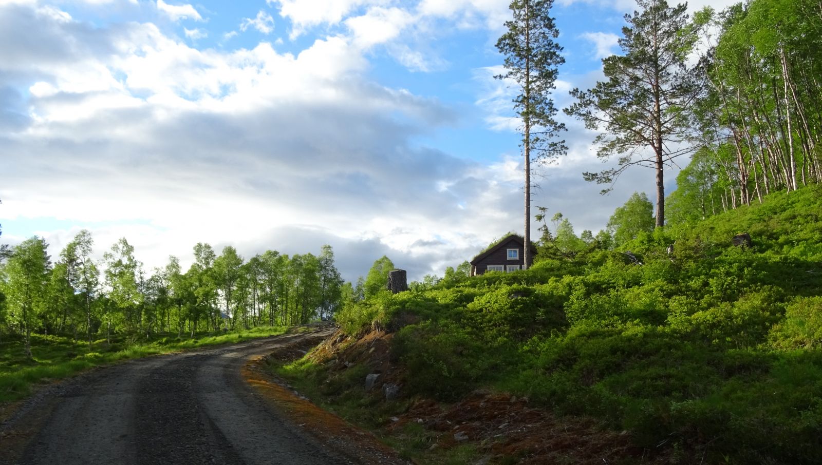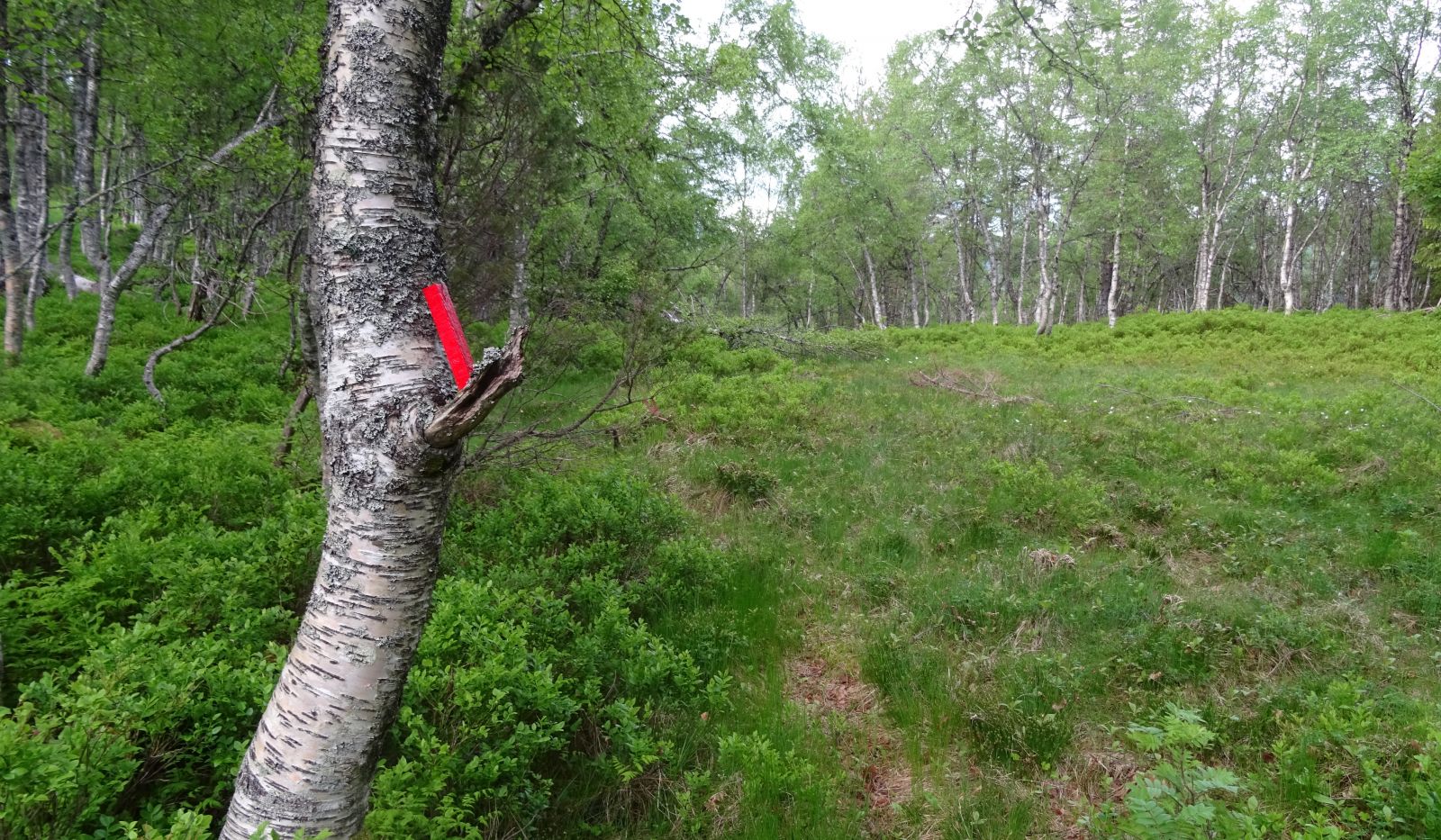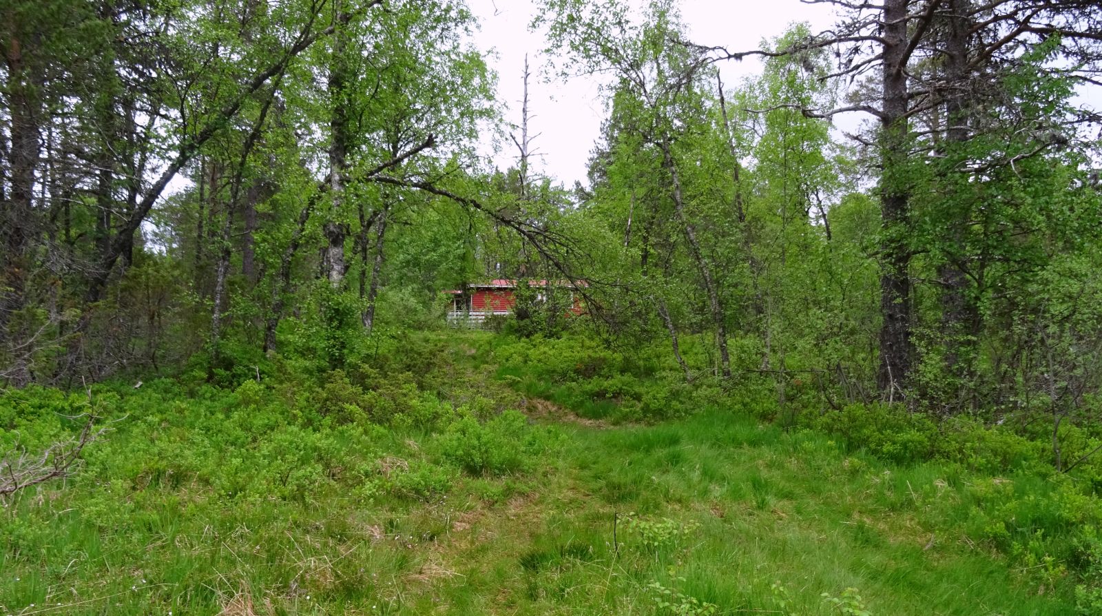 Når du kjem opp til vegen, tek du til venstre og følger vegen ca 100 m før du tek av på sti på høgre side inn gjennom skogen og vidare til Melssætra. Det er raude merke som heng i trea eller stokkar med raud topp-ende. Stien er til dels utydeleg/fråværande, men merkinga viser veg.
