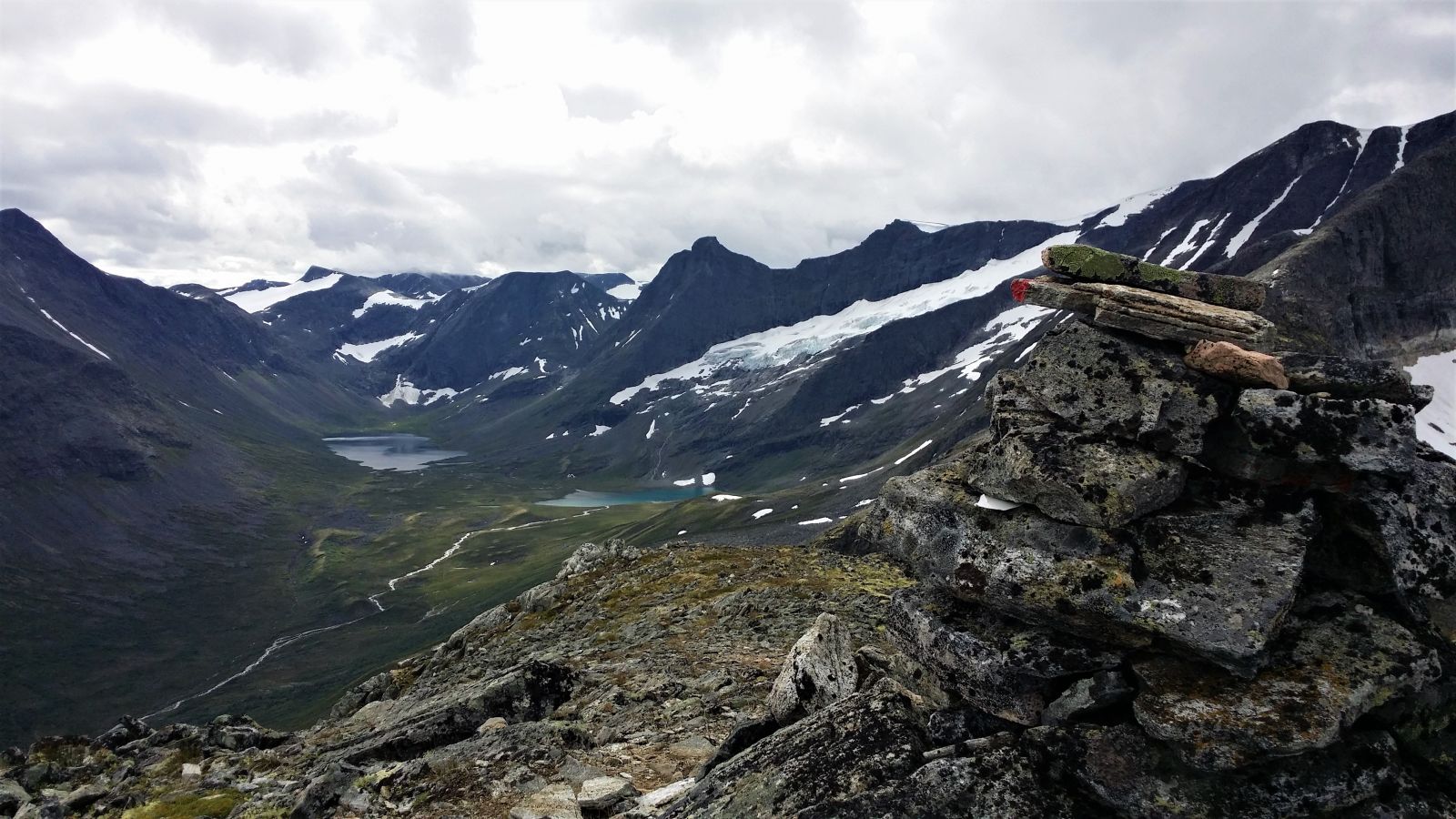 Etter slalombakken vil råsa flate litt ut, før den igjen blir brattare opp mot Kvithaugen. Du går vidare i dalen mellom Nonshaugen og Middagshesten. Ved om lag 940 moh. står eit skilt som peikar mot Middagshesten. Her må du trakke opp ei brattare skråning og gå forbi nokre fjellknausar, før du kjem opp på flata som fører inn mot foten av Middagshesten. Sjå godt etter dei raude V-ane vidare over denne steinsletta.