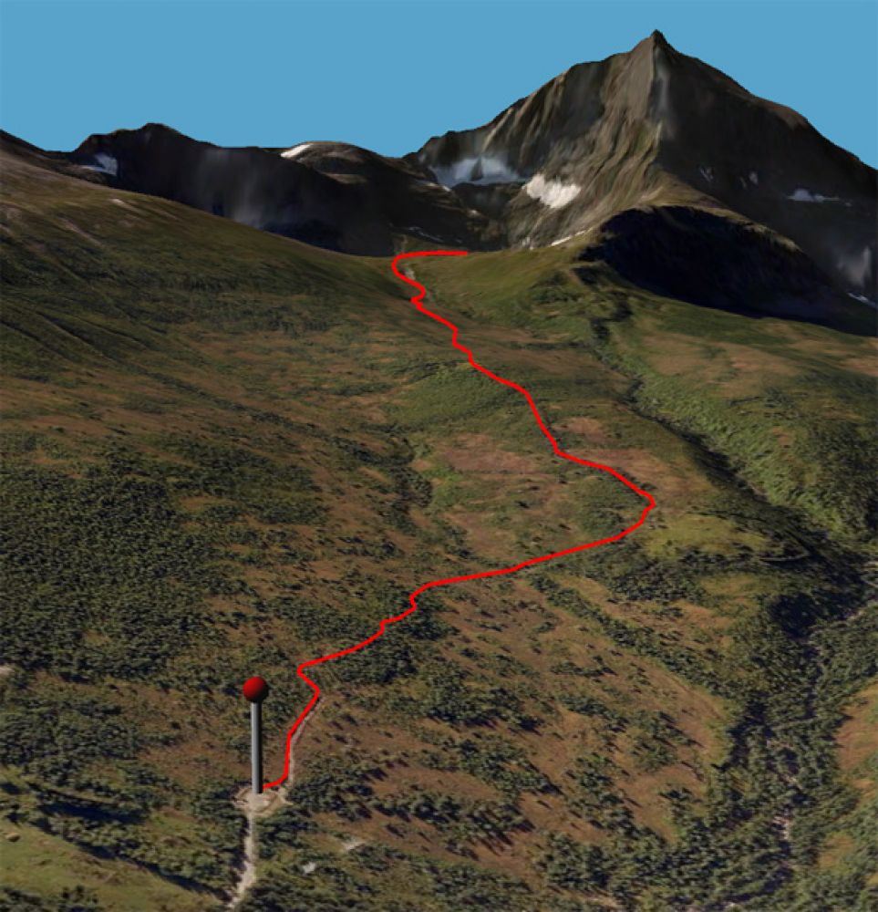 Fra Røsta seter følg sti som går til venstre oppover fra setra og i venstresiden av selve dalen. Tydelig sti går slakt oppover og innover dalen. Innerst i dalen tar den oppover til venstre langs elva fra Middagsvatnet. Følg en rygg oppover, og der den slaker ut krysses elva. Da er det bare et lite stykke igjen til Middagsvatnet som ligger veldig flott til like under Middagstind.