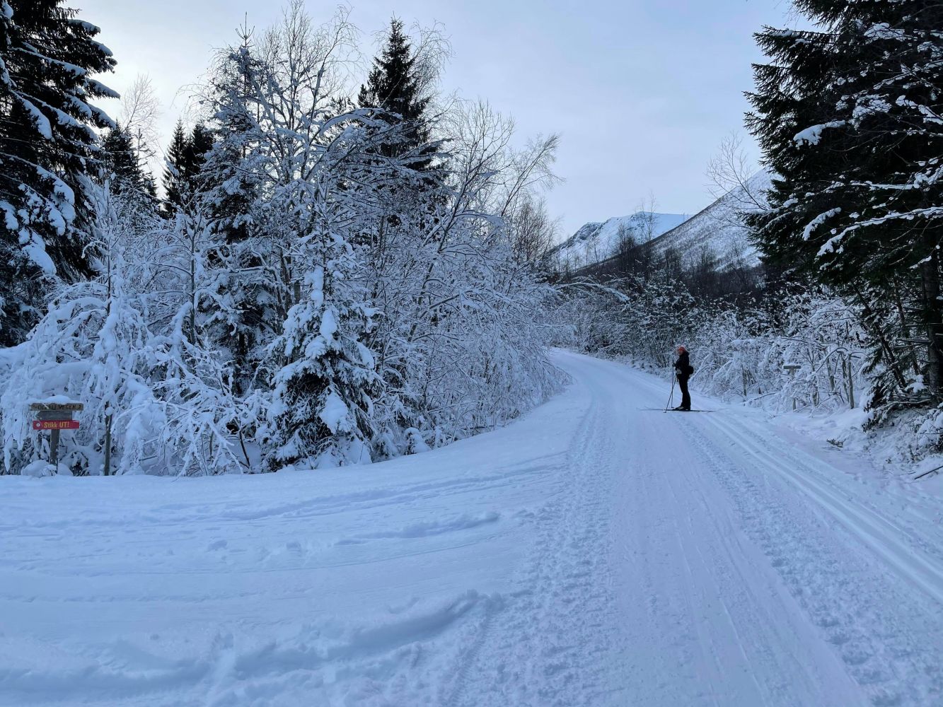 Følg skilting stikk ut ski. Løypa starter innover langs løysløypa vest for hallen. Etter ca 150 meter langs lysløypa går stien inn på lett stigende skogsveg ca 3km fram til Nysetra. følg stikk ut ski skilting mot Middagsvatnet etter ca 1.0 km passere du Røsta( seter ) følg skilting videre mot Middagsvatnet. Etter 2.5 km i flott og åpent terreng med noe bratte partier er du fremme på Middagsvatnet