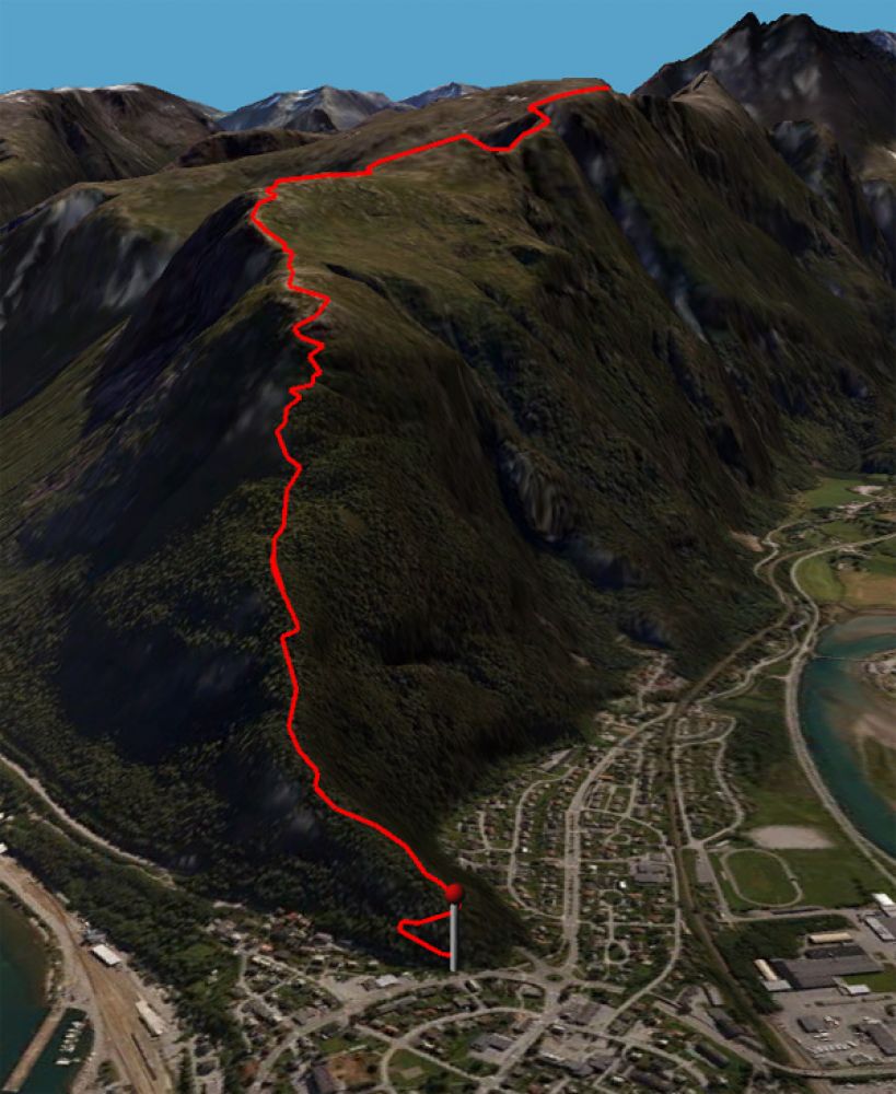 Kryss over den kvasse eggen på Mjølvaskaret og fortsett oppover ryggen på andre siden av eggen. Når terrenget legger seg etter stigningen følger ruten kanten av Romsdalen mot Mjølvafjellet og den store Aakesvarden som står helt frampå kanten. Ca. 400 meter før Aakesvarden står det en mindre varde med bok.