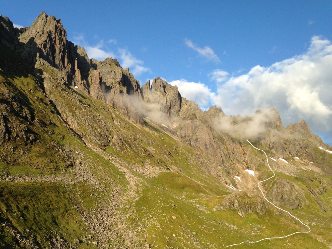 En spektakulær tur blant tindenåler, egger og fjorder. Turen beskrives her opp til platået under tindenåla Bladet, og videre til Mohns topp. Bestigning av bladet krever klatreutstyr. Isøks og hjelm bør vurderes mot forholdene.