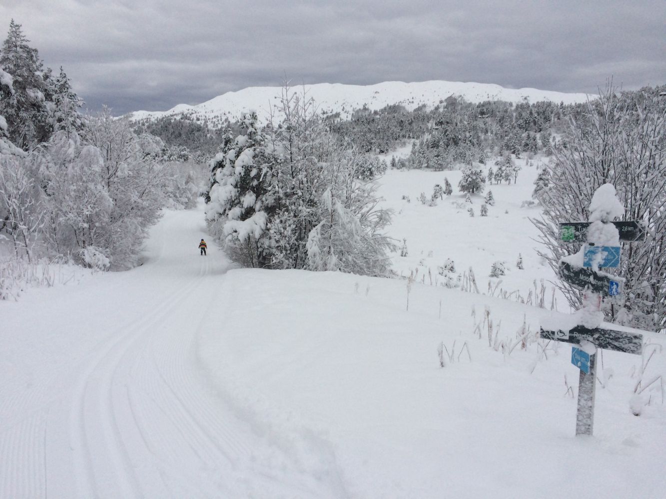 En fin, familievennlig tur i preparerte skispor. Turmålet ligger i lett kupert skiterreng, perfekt for familieturen, med fine områder å raste på.