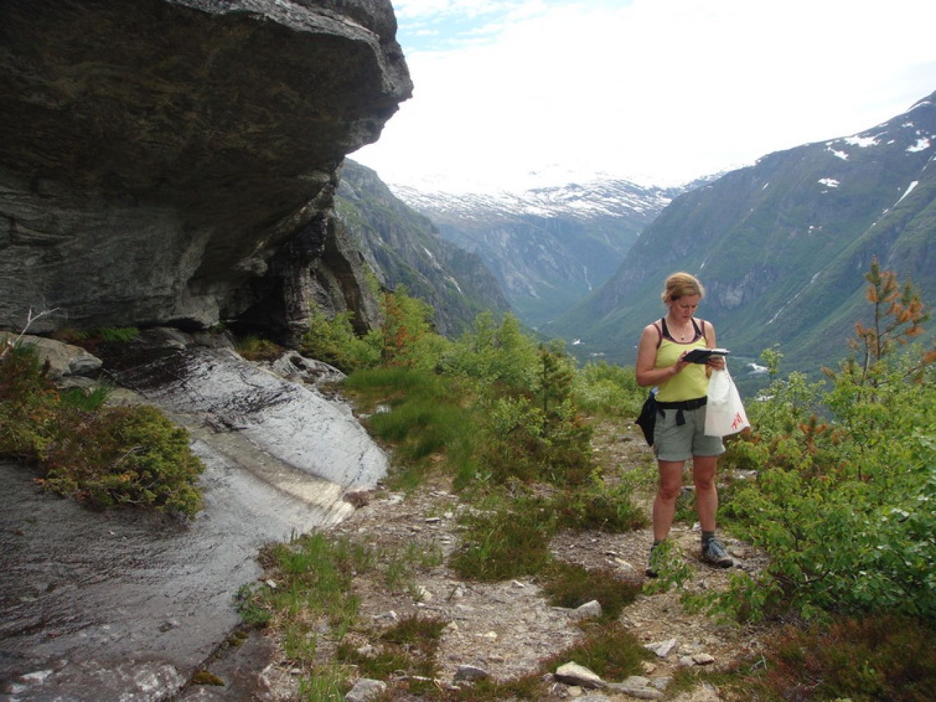 Jevnt bratt oppover skogen uten særlig hvile i starten, men mer variert terreng etterhvert. Det er god og godt merket sti. Følg den opp skogen i starten, og der den etterhvert slyger seg mellom hamrene. Et par steder går noen partier horisontalt langsmed hammere.