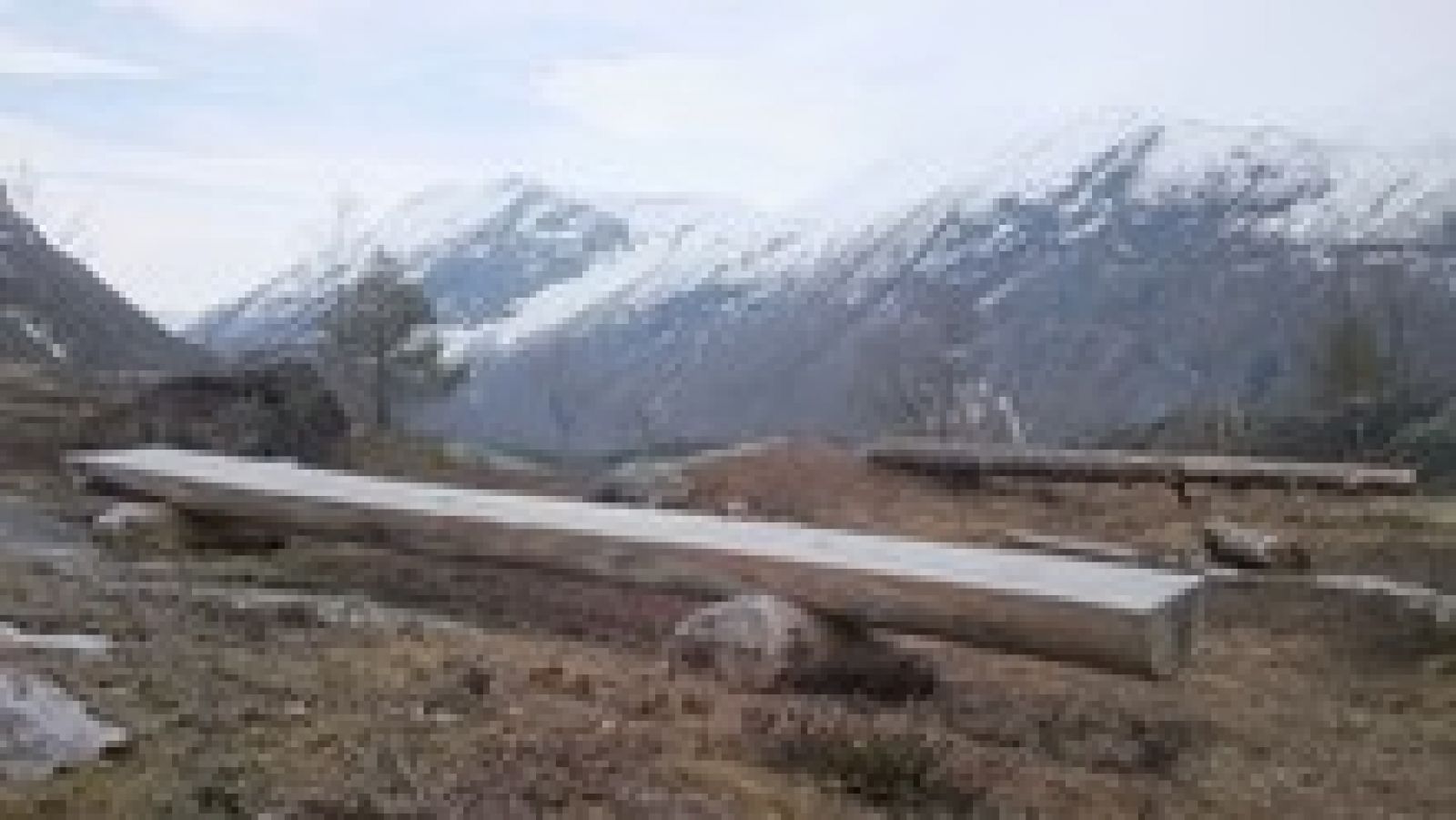Det er kasse med trimpost ved brua. Der er det også rasteplass med benkar. Eigarane ber turgåarane respektere at gardstuna er privat område.