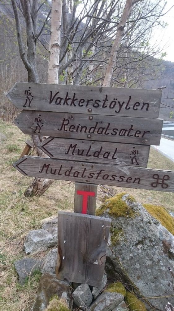 Frå parkeringsplassen går du ca. 100 meter vidare langs hovudvegen før du kjem til starten av vegen opp til Muldalen. Turruta følger her grusveg/sti opp til Muldalen. Det er ingen vegdele, så det er lett å finne fram. Vegen opp til Muldalen slynger seg i 13 svingar vel 2 km oppover i lia, med ei jamn og fin stigning opp til 350 moh. Underlaget er grus, og turvegen er stort sett god og brei for gåande.