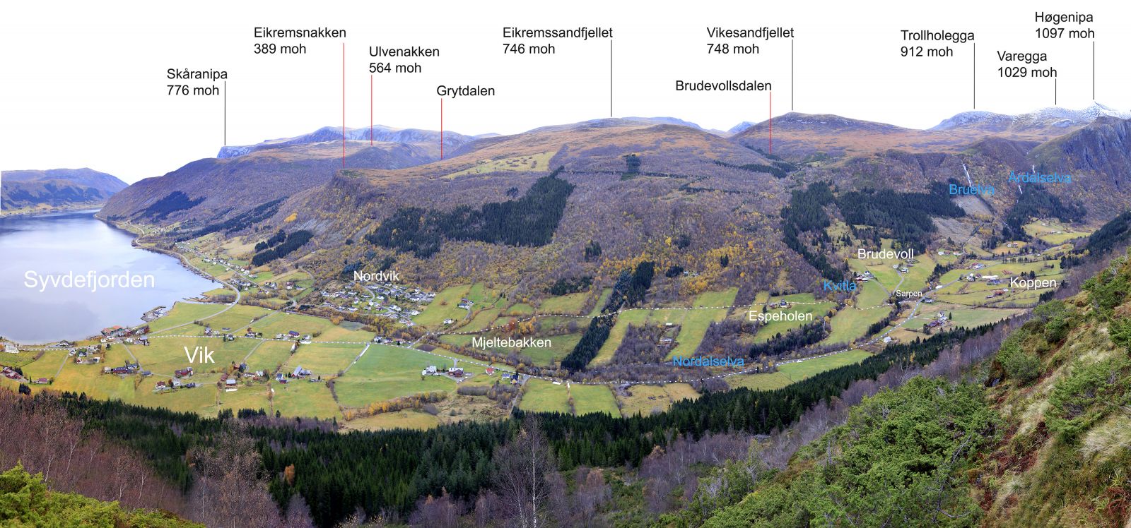 Rutebeskrivinga tek utgangspunkt frå Syvde kyrkje. Vanlegvis vil ein finne plass til å parkere også nærare Sarpen.