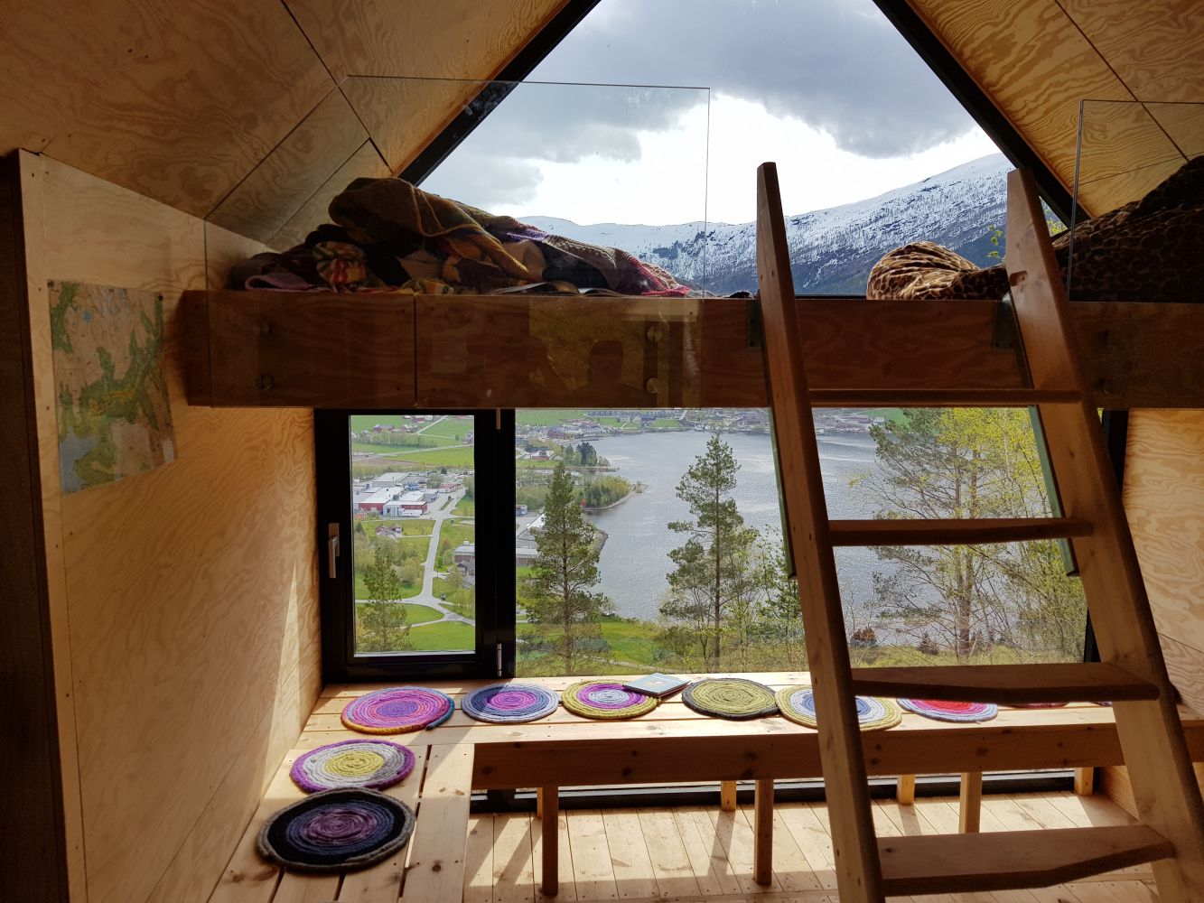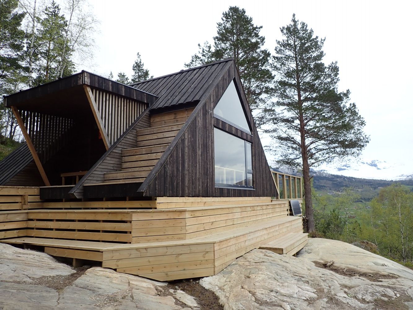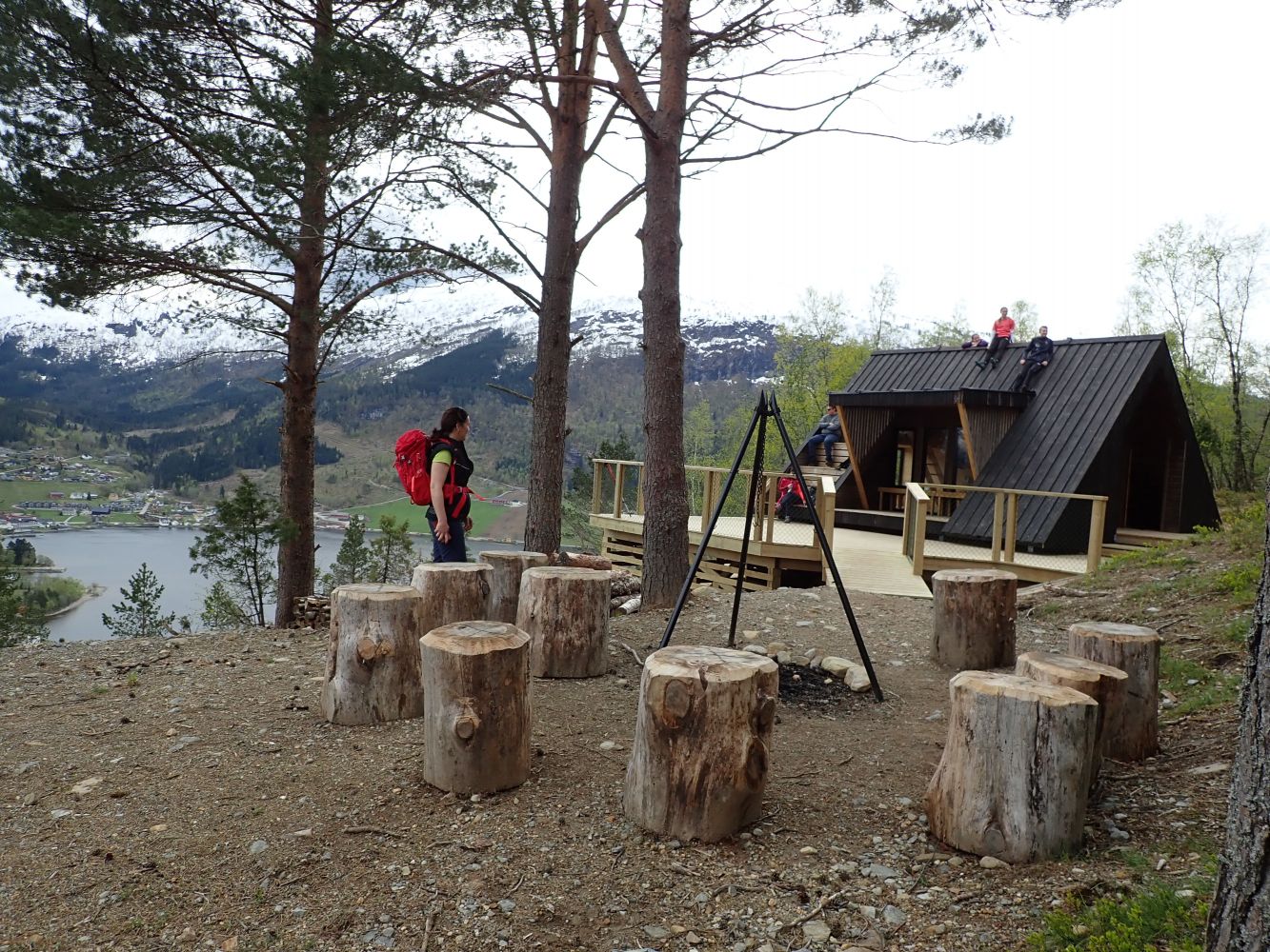 Når du kjem opp til dagsturhytta vert du løna med fantastisk utsyn over Grodås og Hornindal. Dagsturhytta har svært gjennomtenkt utforming med sitteplassar ute, eit lite utvendig tak/huk på kvar side gir ly om det regnar litt. Inne er det eit lite utlånsbibliotek og benkar med sitteputer. Dagsturhytta har stor panoramaglasvegg med flott utsyn og ein liten hems til kos og lesing. Ute er det opparbeida platting og fleire sittegrupper.