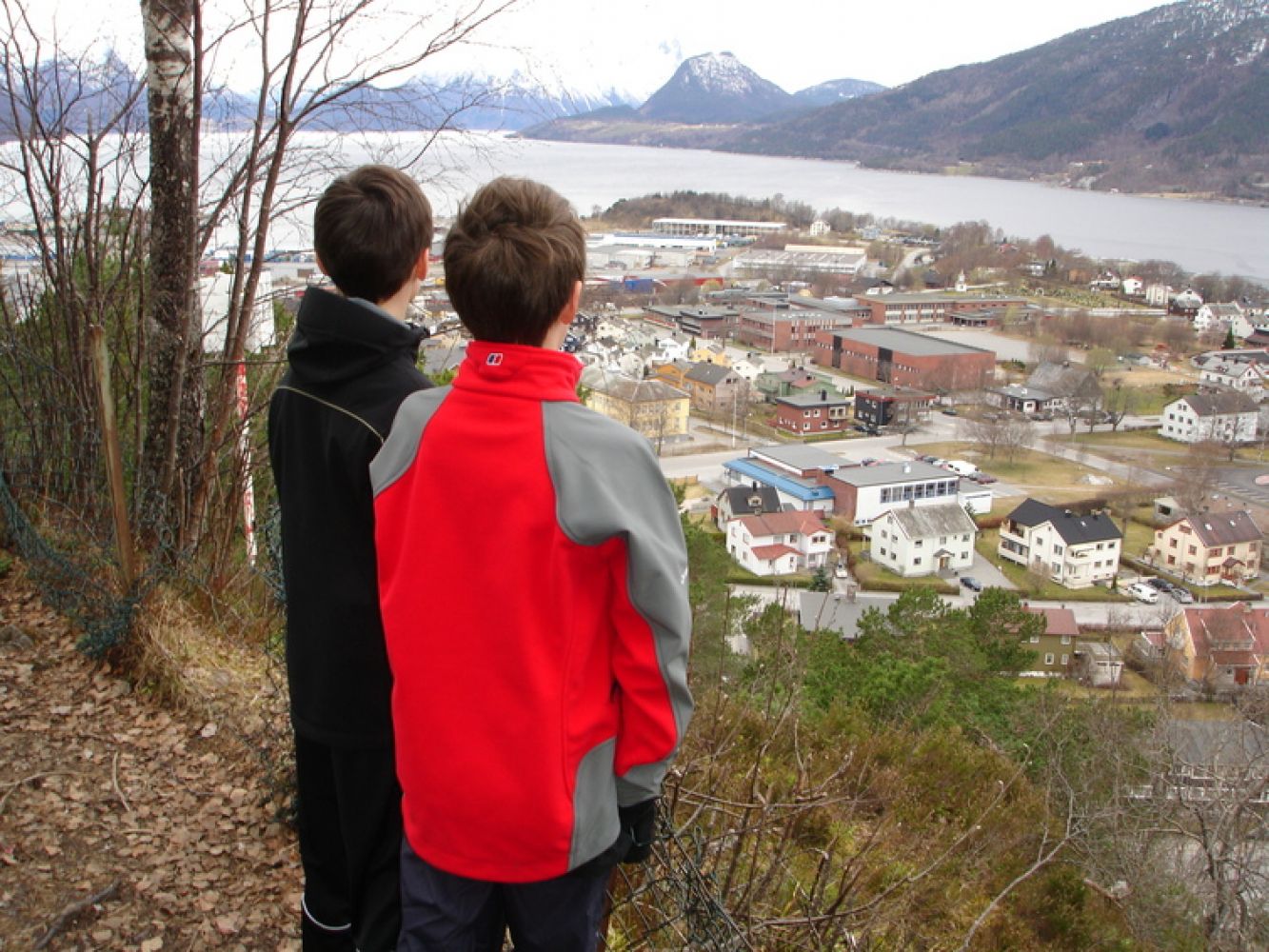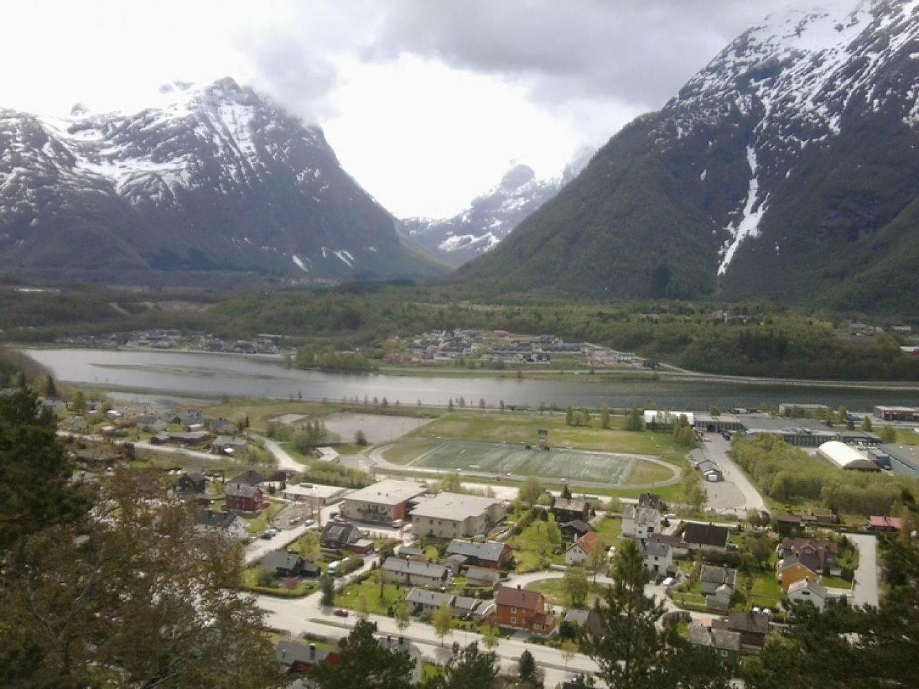 Start ved parkeringsplassen under Nebba i Åndalsnes sentrum. Det går to paralelle stier. Steinstien og stien med rullestandard følger paralellet opp skogen.