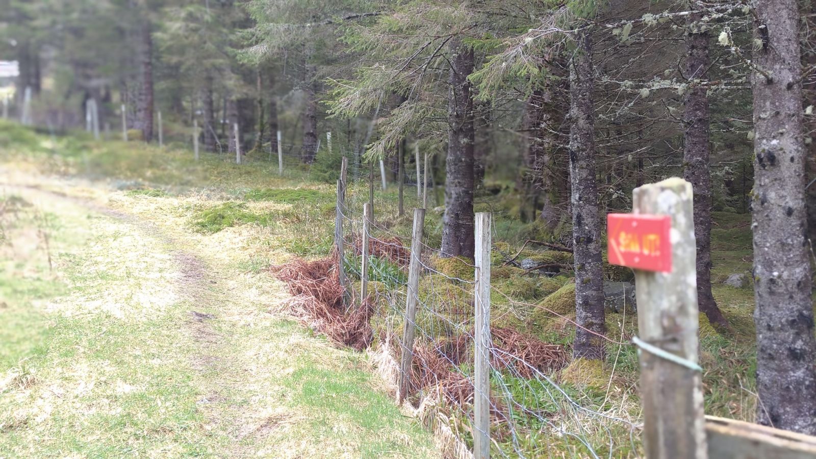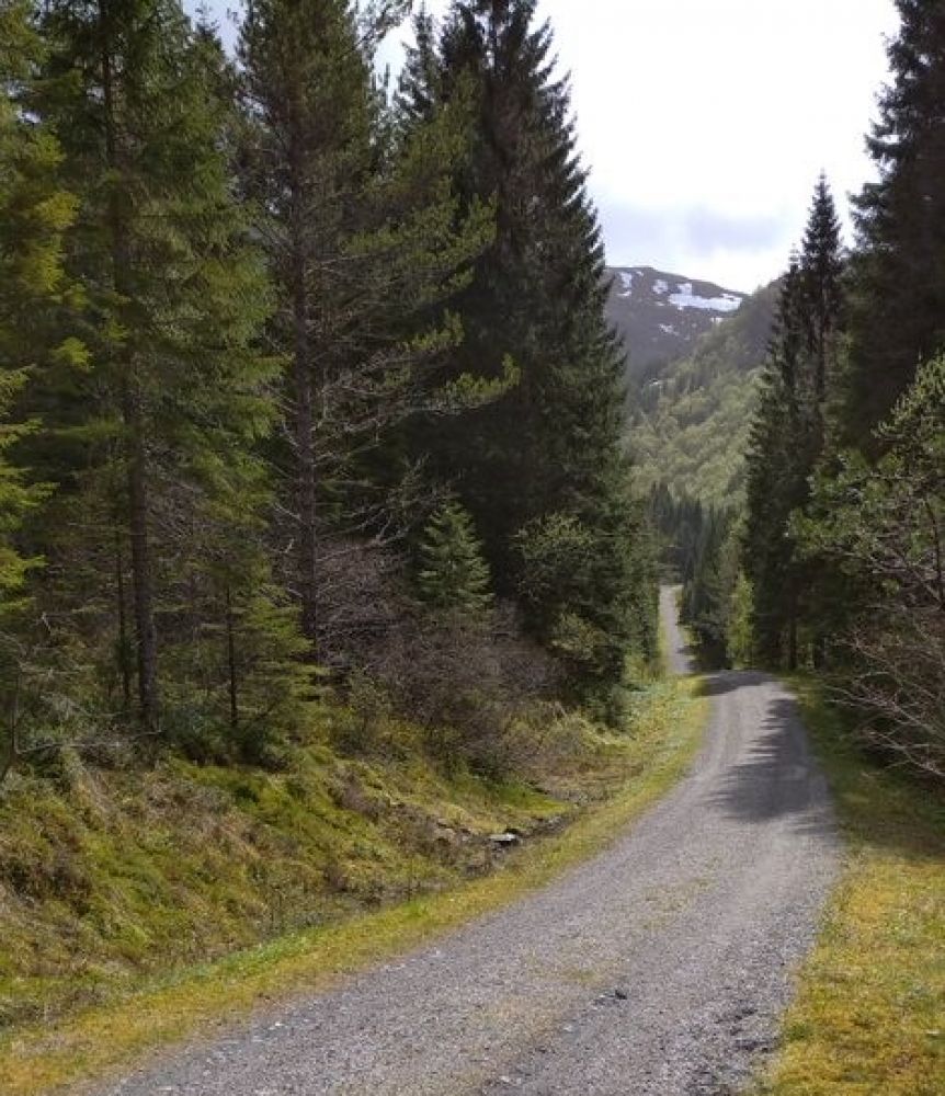 Fra parkering ved butikken følger du Fv64 oppover bakken mot Kårvåg. Ca 200 meter fra butikken tar du til venstre inn på en grusvei. Skiltet til Meekknoken står der du skal ta av. Følg veien helt inn til posten. Hele turen går langs grusvei/skogsvei.