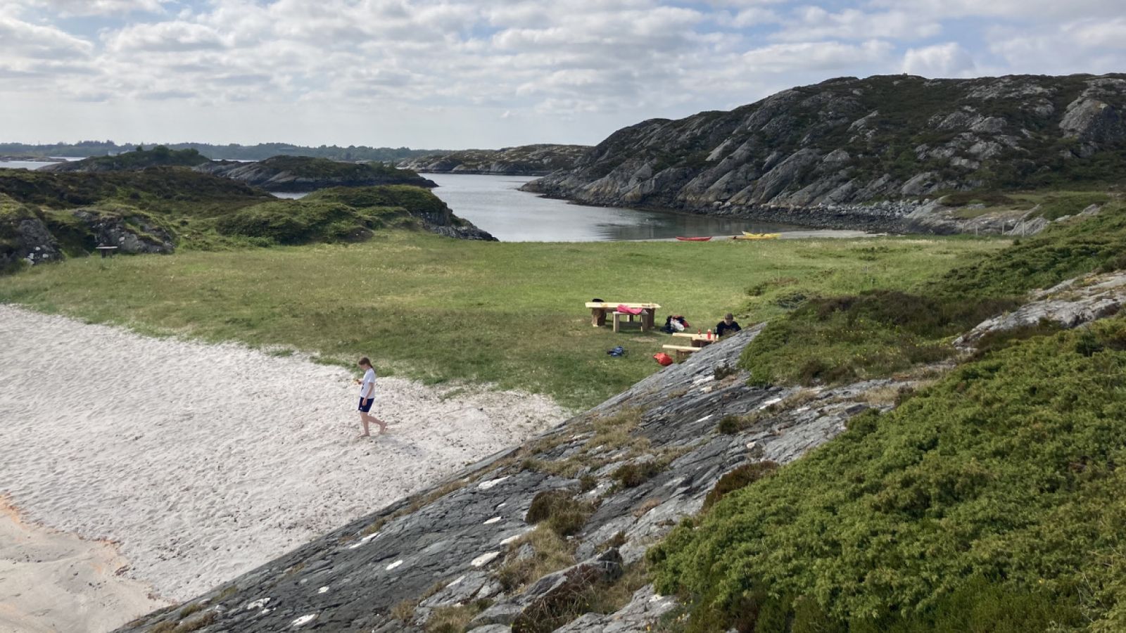 Det er benker og bålplass der. Vær obmerksom iforhold til flott, siden det er sauer på øya.