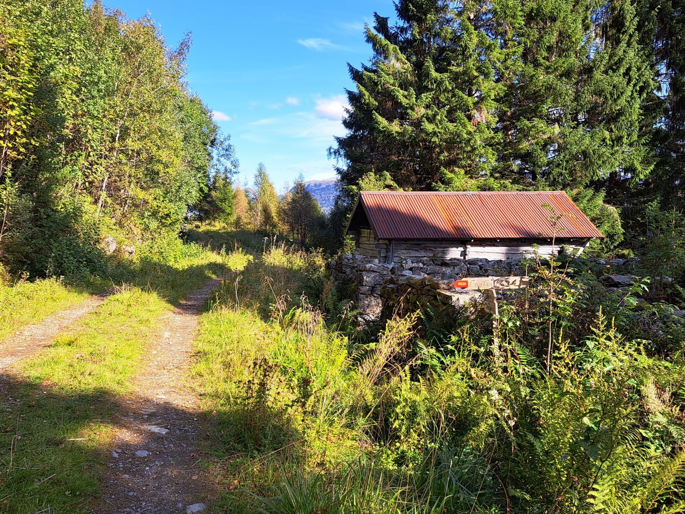 Gå langs bilvegen mot skyttarhuset. Rett før du kjem til innkjøringa til skyttarhuset er det ein skogsveg opp til høgre. Følg den heile vegen fram til Nesjesætra.