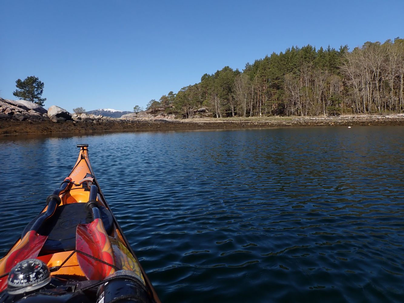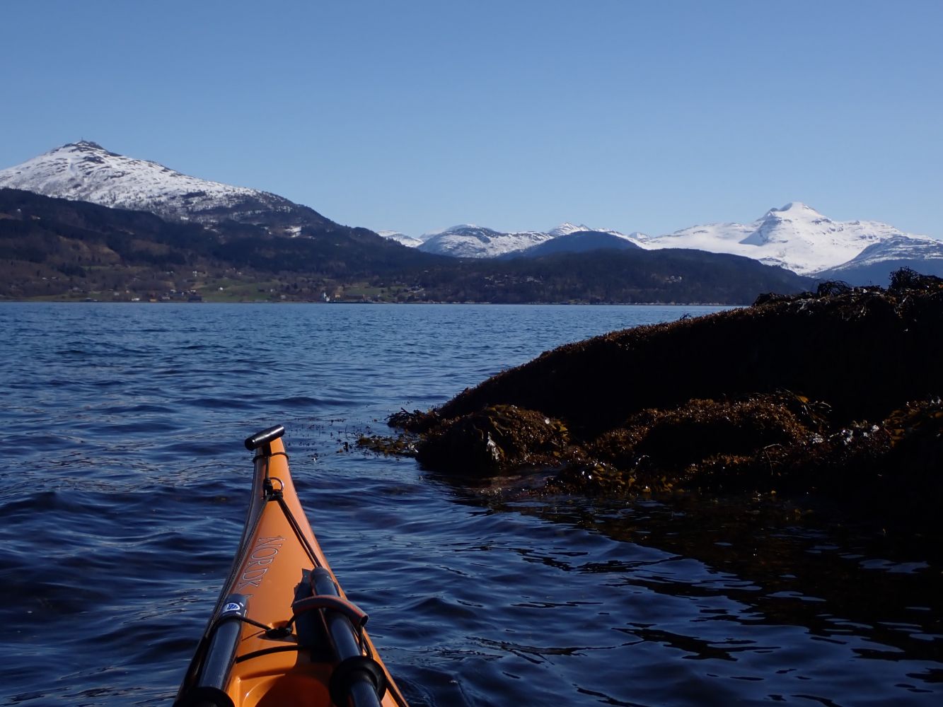 Fra Nesøya småbåthavni Øyabukta er det fint å legge turen sørover langs land og passere under brua som fører ut til Nesøya. Når du passerer ut det lille sundet ser du rett over mot Tingvoll. Fortsett nordvestover langs land. Her er relativt tett med hytter det første stykket. Etter ca 1,5 km padling blir det imidlertid færre hytter og flere fine plasser for strandhugg. De siste 400 meterne fram til spissen av Nesøya er det en del klipper og berg hvor landing er vanskelig / umulig, og hvor en må regne med reflekssjonsbølger om vinden står fra nordvest.