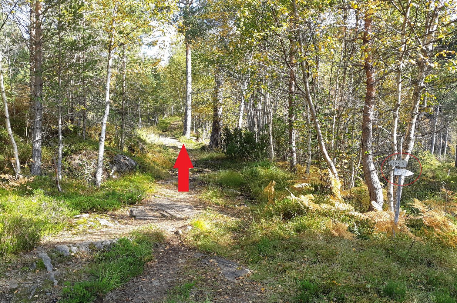 Ruta er merka med raude merkepinnar og den er skilta. Første merking finn du når du har komt inn på skogsvegen. Det er merka og skilta ved stidele og der det kan vere tvil om vegval. Der det er tydeleg skogsveg/sti, kan det vere langt mellom merka.