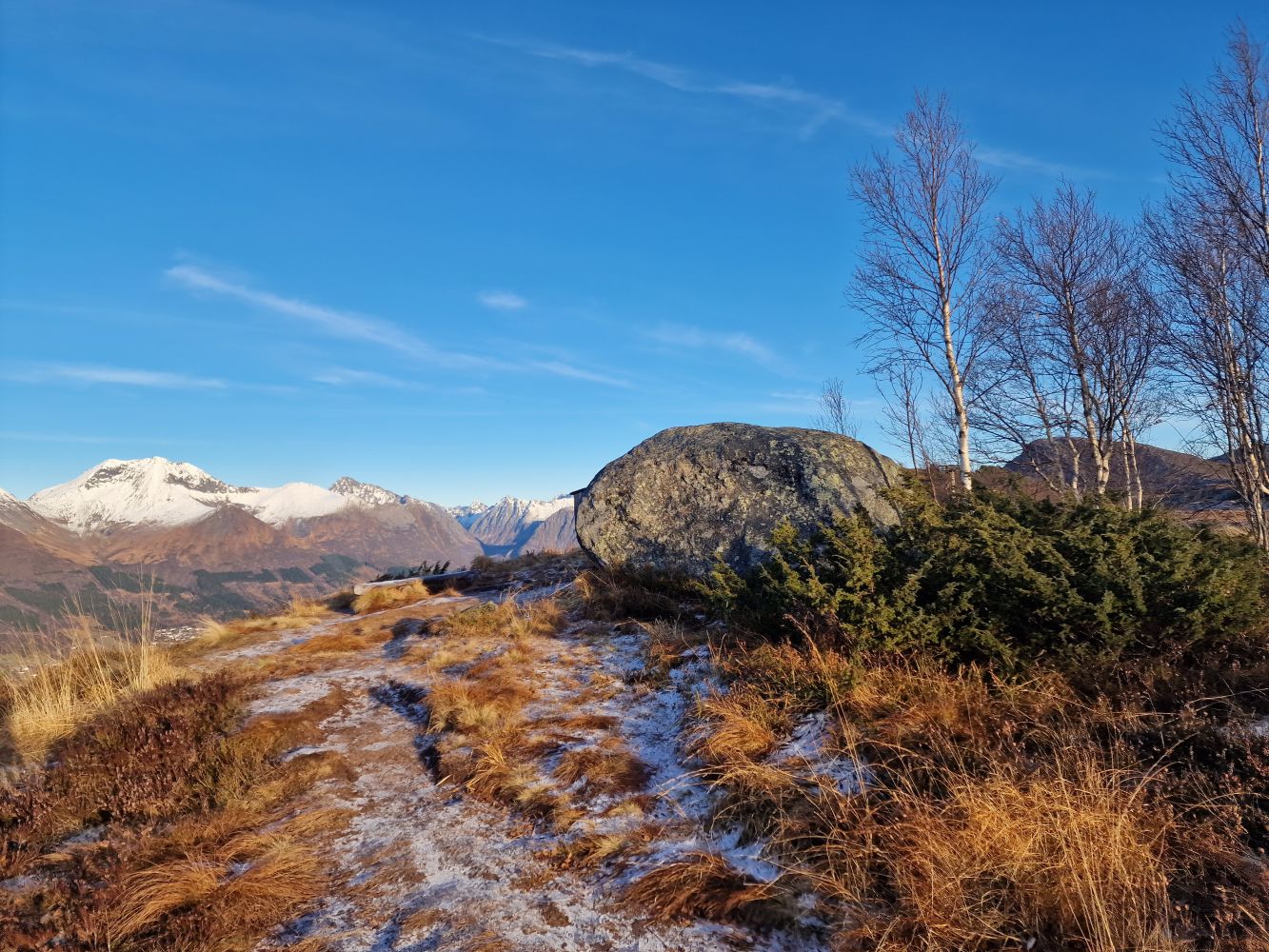 Det er fleire benkar langs stien, så det er fint å ta seg ein rast for å kvile beina eller berre for å nyte roa og freden i naturen.