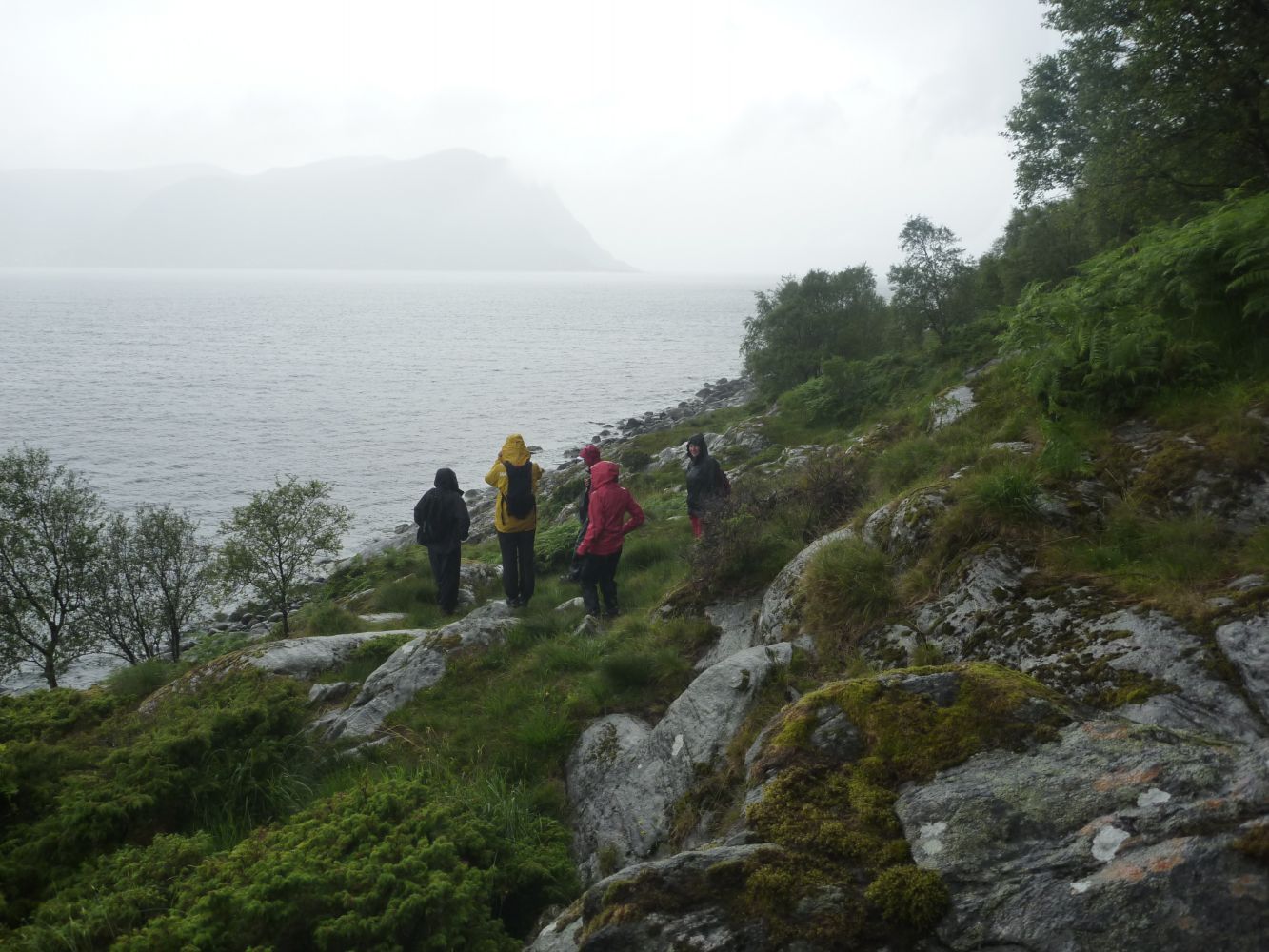 Følg den mosegrodde kjerrevegen etter brua over Storelva. Etter ca 100 meter deler denne seg og du skal gå rett fram. Følg kyst sti med lauvskog og svaberg, og med utsikt til Sulafjorden og Hareidlandet. Etter ca 2-3 timar kjem du til Eltraneset. Her opnar landskapet seg og ein går i ope og lett terreng på nordsida av Sula til parkeringsplassen i Sandvika. Registreringsboka finn du ved dei gamle murane heilt nordvest på Sula.