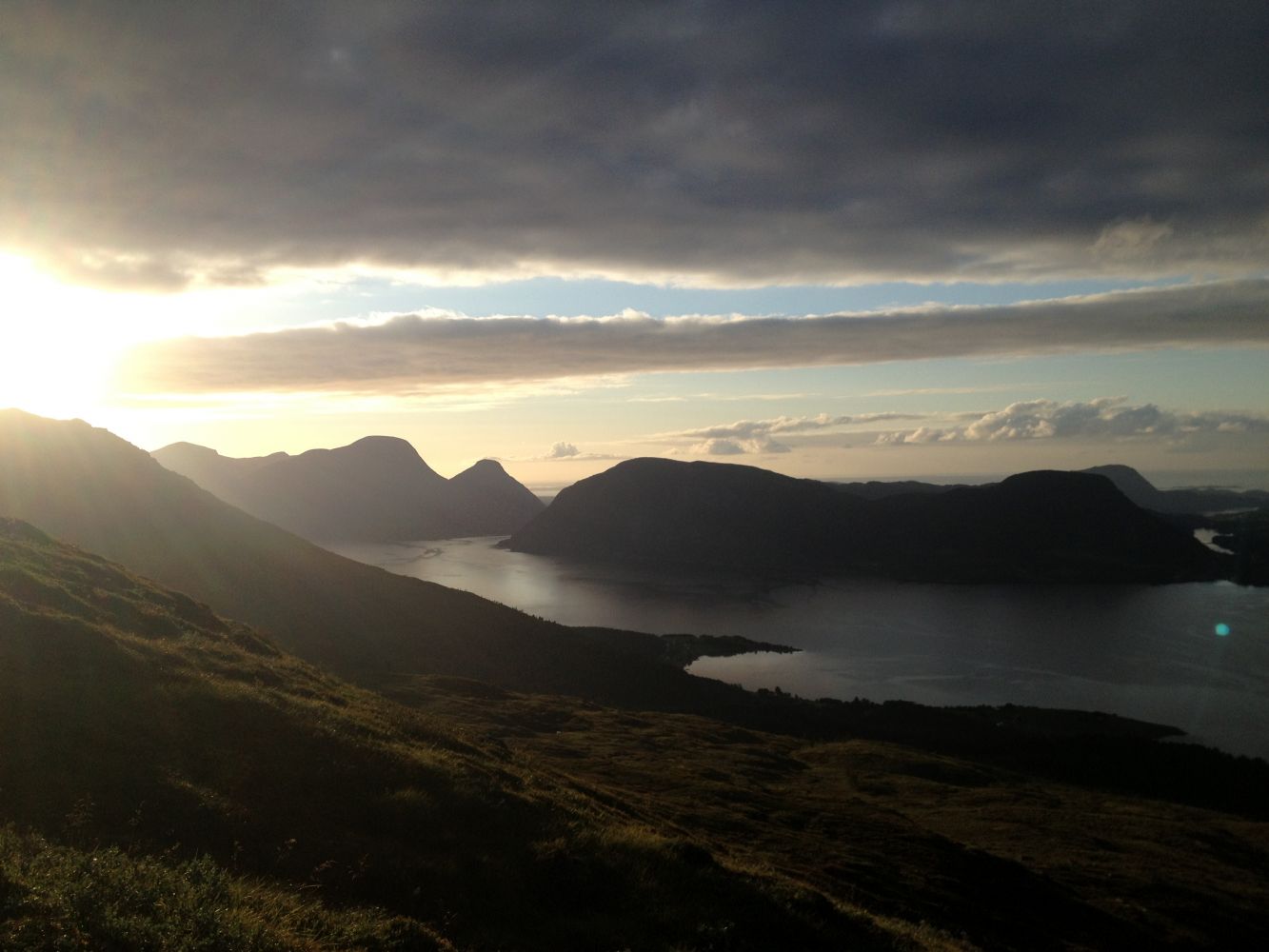 De nærmeste fjelltoppene du ser er Hennafjellet utover til venstre mot fjorden, innover og bak deg har du Tindan. Det kan være fint å fortsette turen til en av de toppene også. Anbefaler runden Brakjet-Nonsfjellet-Tindan-Hesjingfjellet-Brakjet.