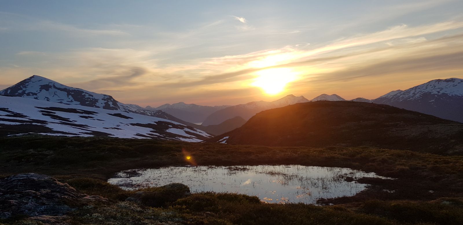 Etter slalombakken vil råsa flate litt ut, før den igjen blir brattare opp mot Kvithaugen. Her er det bjørkeskog og delvis myr eit kort stykke. Du går vidare over tregrensa i dalen mellom Nonshaugen og Middagshesten. I denne dalen kjem du til eit skilt som peikar mot Nonshaugen. Føl dei raude V-ane herifrå; over elva, og vidare opp den siste bakken. Ikkje trakka sti det siste stykket. På Nonshaugen vil du finne posten ved ein liten knaus, med eit elles lett myrlendt terreng omkring. Utsikt mot Norddalsfjorden og utover Storfjorden.