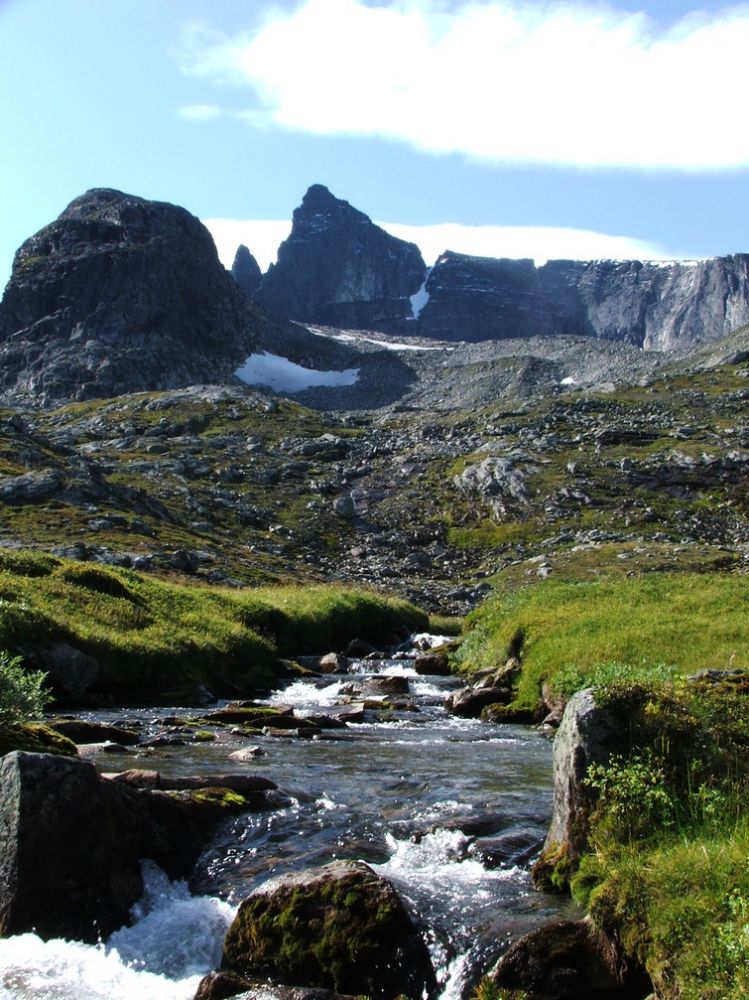 På toppen av Norafjellet er det flere små tjern, og en passerer disse på vegen innover.