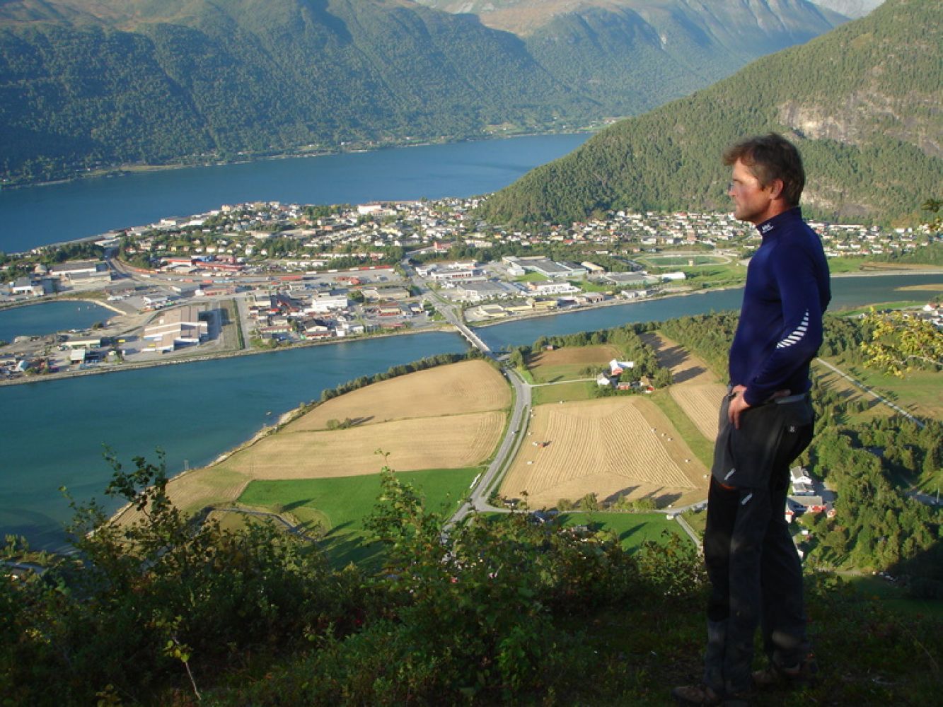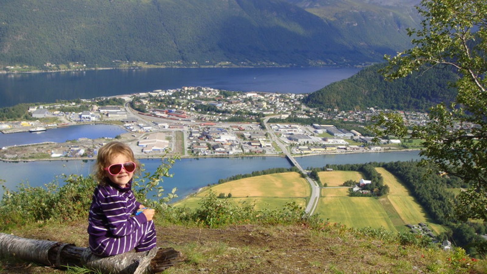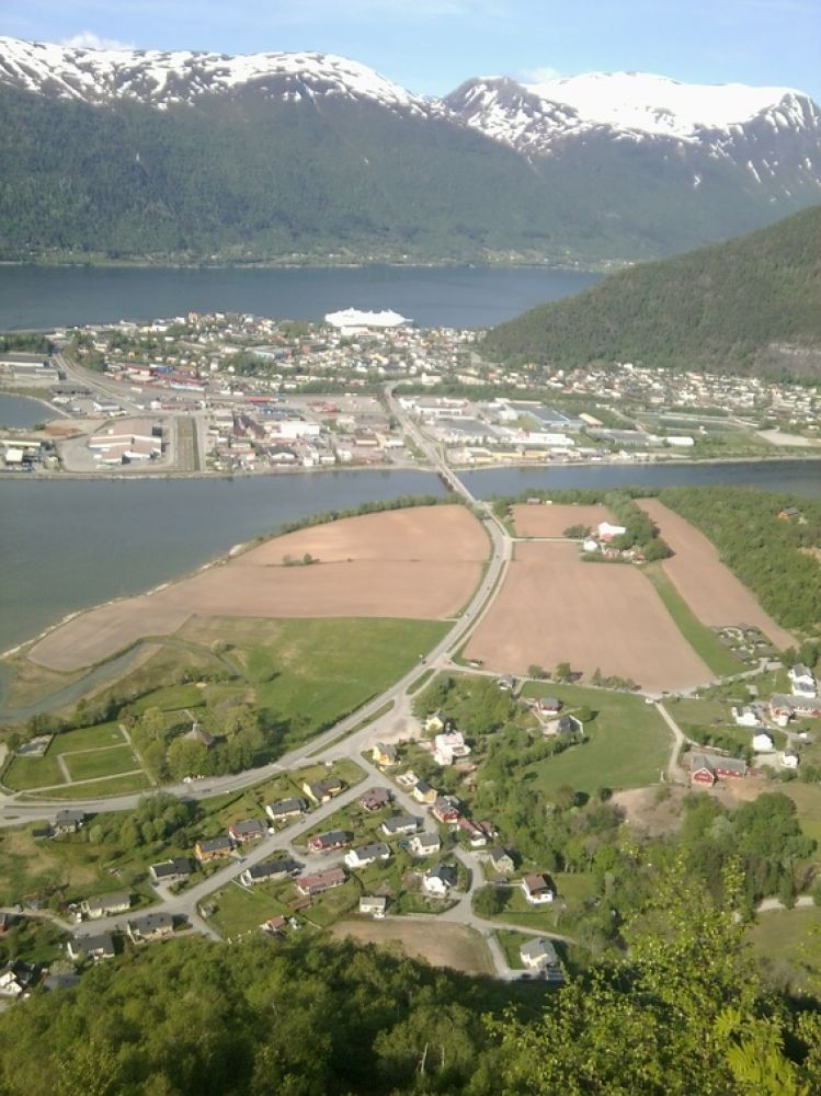 Fra toppen er det flott utsikt ned til Veblungsnes, mot Åndalsnes og opp Romsdalen.