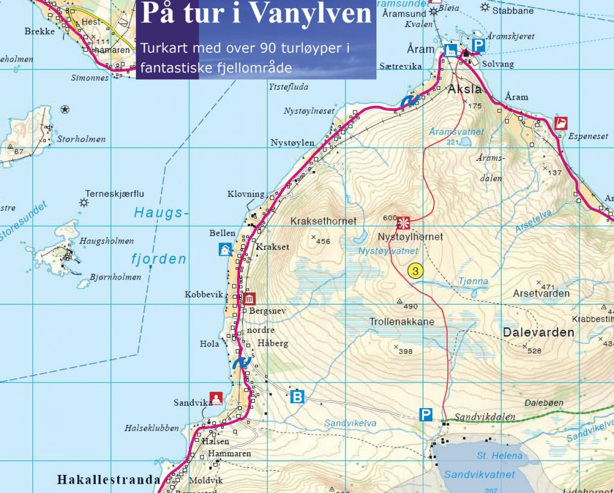 Ein kan starte både ved Åram kyrkje, eller frå enden av bomvegen i Sandvikdalen. Begge stader er starten av stien skilta. Lettaste turen får ein ved å starte frå enden av bomvegen på 240 moh i Sandvikdalen. Går ein frå Sandvikdalen og tilbake til Sandvikdalen er dette ein tur med grøn gradering. Då er det lett terreng i godt merka sti til toppen på 600 moh, og dette er ein tur der ein gjerne kan ha med små born. Informasjonen nedanfor om stigning, lengde og anna om turen gjeld varianten med start frå Sandvikdalen. Går ein opp frå Åram er det brattare og tyngre terreng og raud gradering, men ein får utsikt gjennom heile turen