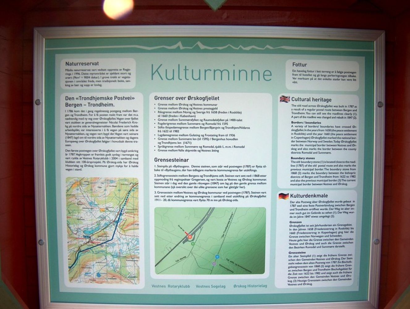 Turen starter på 310 m og starter på en stor parkeringsplass på Ørskogfjellet på grensen mellom Ørskog og Vestnes kommune. Du svinger av mot venstre når du kommer fra Vestnes. Da vil du sjå et offentlig toalett til venstre og en informasjonstavle til høyre. Når du har parkert går du opp til rasteplassen og møter grusveien etter ca. 50. Da tar du mot høyre og etter 100 m møter du en låst bom. Nå er det ingen kryssende veier. Grusveien forsetter i svak stigning til 4-500 m, så kommer en halvbratt stigning og veien svinger nordover. Så er det svak stigning helt frem til Måslia, som ligger på 480 m. Du har gått ca. 4 km. Inn til gapahuken er ytterligere 1.5 km med svak stigning, men i tidvis bløtt myrområde.
