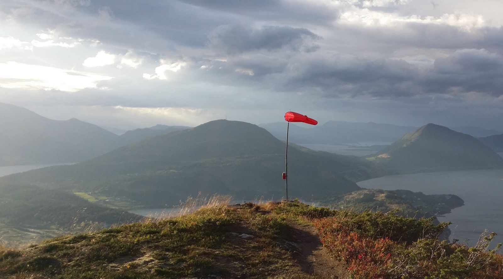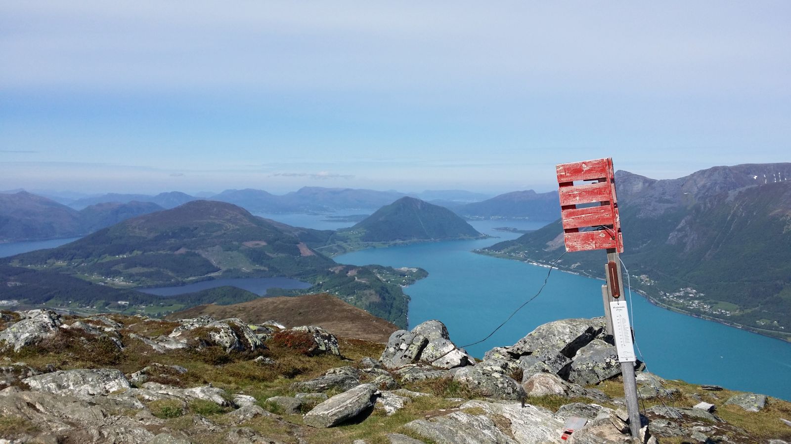 http://www.gjesteboka.no). Frå Melshornet fyl du ein godt synleg sti ned til Dinglavatnet og tek skogsvegen vidare ned til Volda sentrum. I svingen nedanfor Turnhytta (N62° 09.634' E6° 06.774') kan du følgje sti til Heltne/Bratteberg. På skogsvegen ned att passerer du ein minnestein over dei falne i Røyshyttebakken. Du passerer også Prestesætra (N62° 09.391' E6° 05.399'). Eit fint utsiktspunkt med ein ny gapahuk som Volda rotaryklubb har sett opp. Ta gjerne ein rast her. Frå Prestesætra kan du gå snarveg på sti gjennom skogen eller følge skogsvegen. Ruta går ned til bommen øvst i Raudemyrvegen. NB! I 2018/19 er det utbygging av eit større byggefelt (Håmyra) som kanskje gjer at stiar/vegar har alternative ruter i perioder.