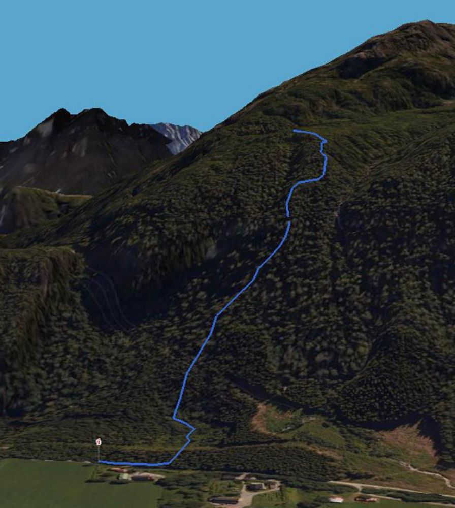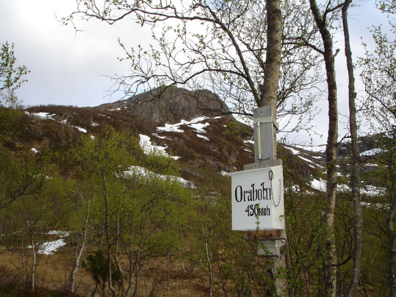 Følg skogsvegen fram til kraftlinje, og så sti etter kryssing av denne. Ganske snart begynner stigninga opp lia, og stien følger til venstre for elva hele vegen oppover. Stien går jevnt bratt helt opp i Orabotn.