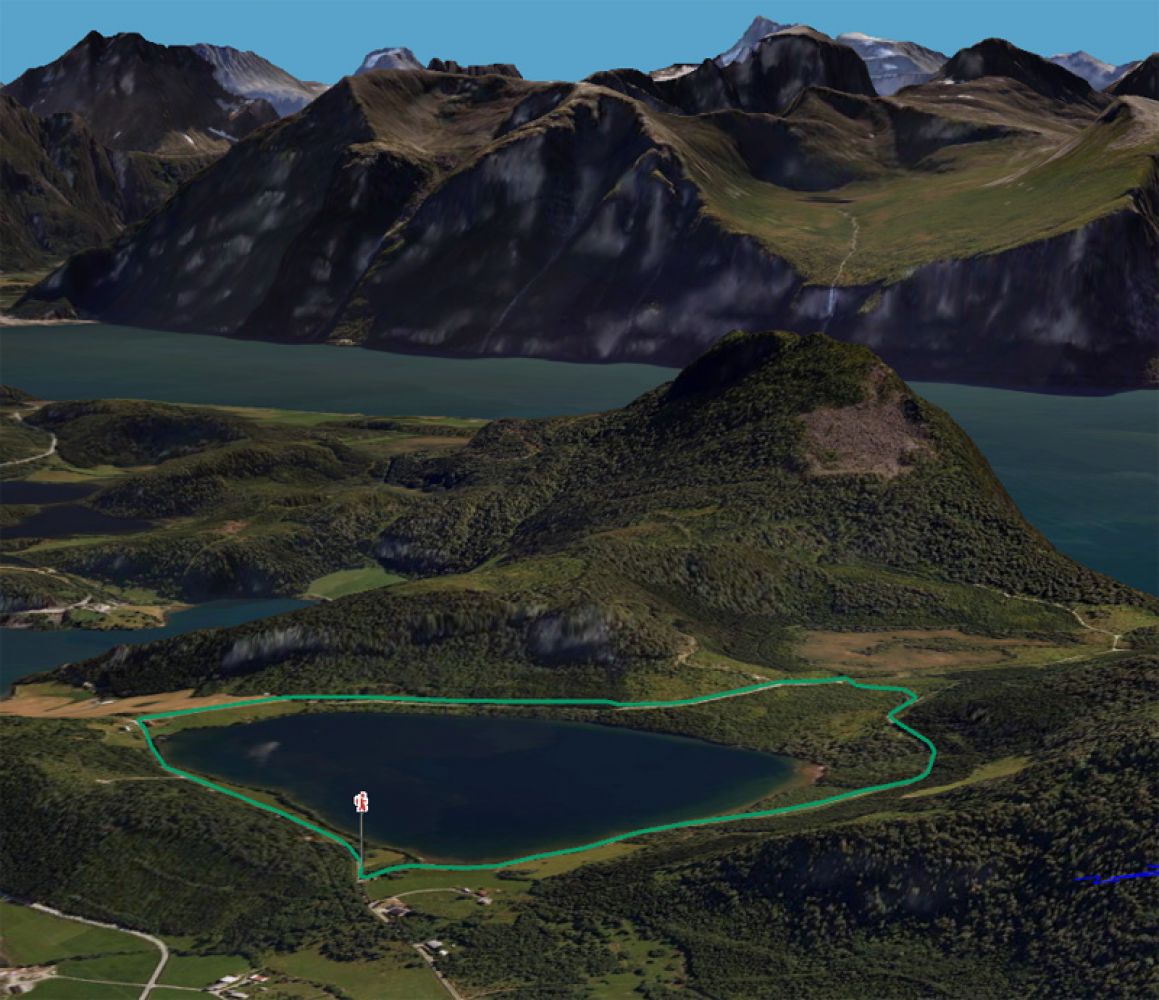 På innsiden av vatnet fortsetter vegen litt forbi vatnet før en litt dårligere vei ned til venstre leder til en annen traktorveg som går tilbake på andre siden av vatnet.