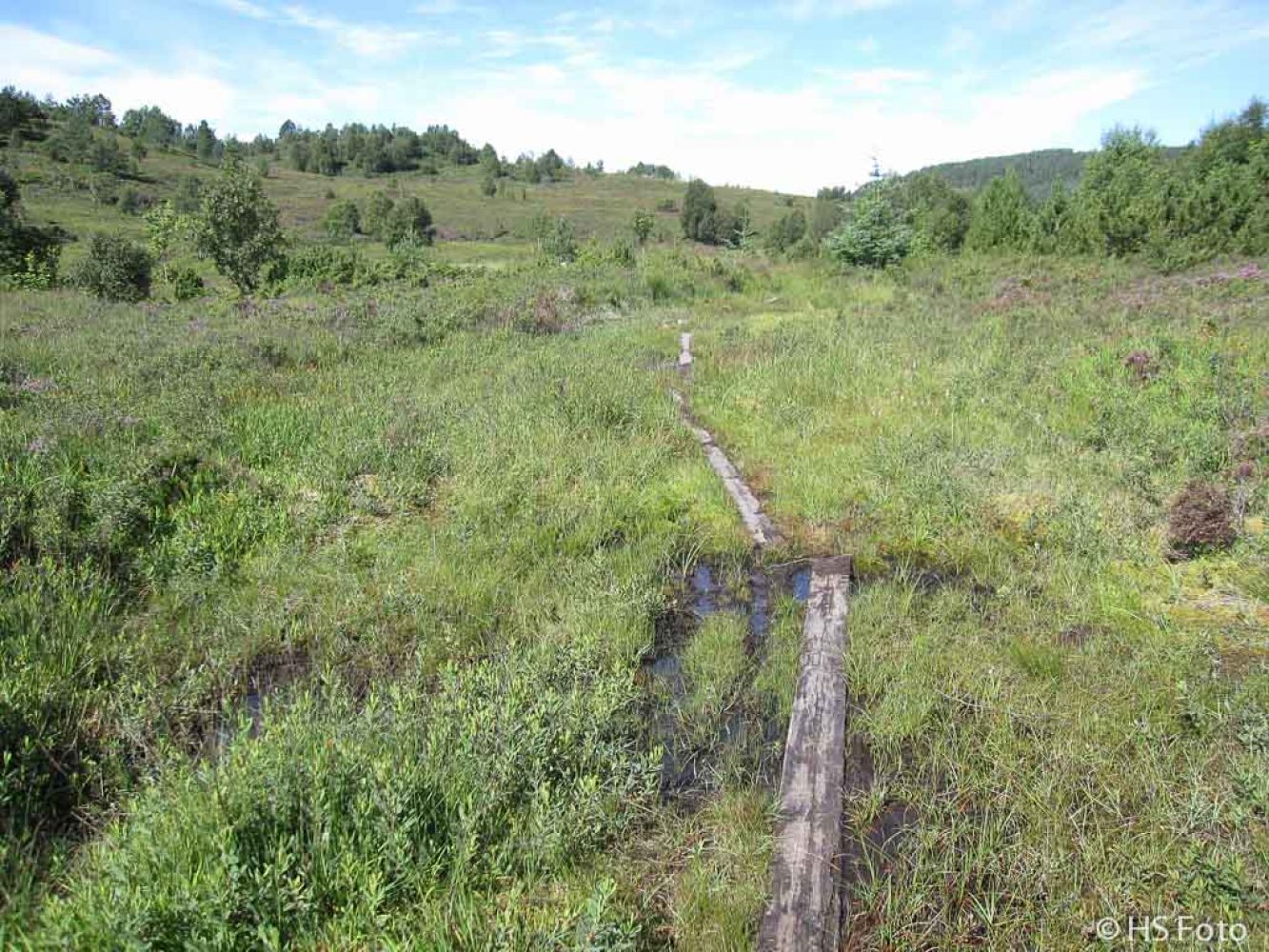 Vi fortsetter østover og tar til høyre ved neste stideling, og krysser en 'myr'/vått område. Her begynner stien å gå ned mot parkeringen. Du står snart ved krysset som fører deg ned til bilen på 'Osnesbrunene'