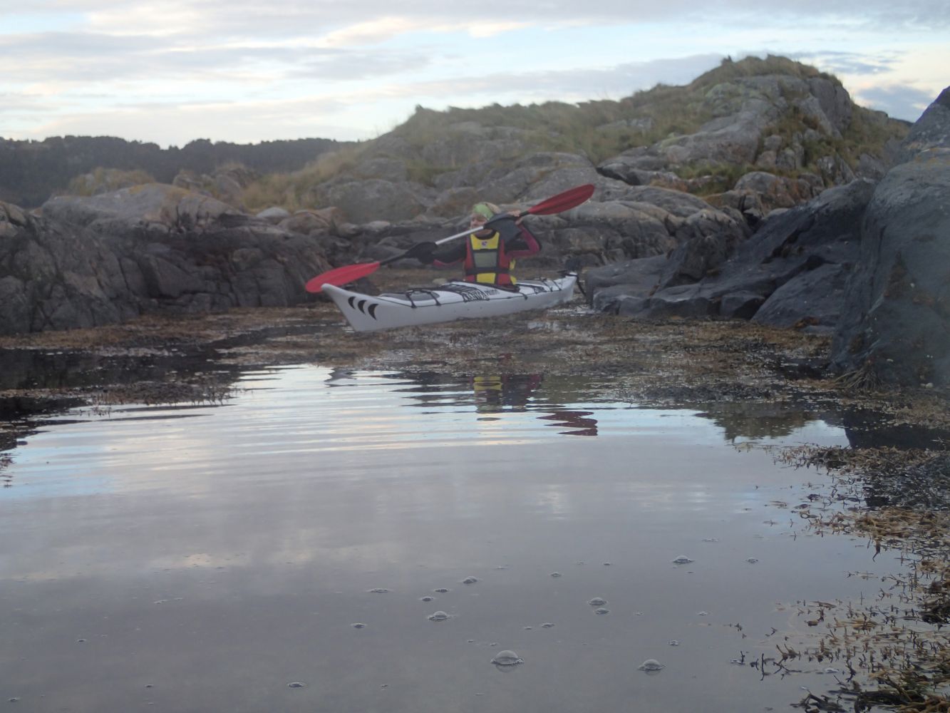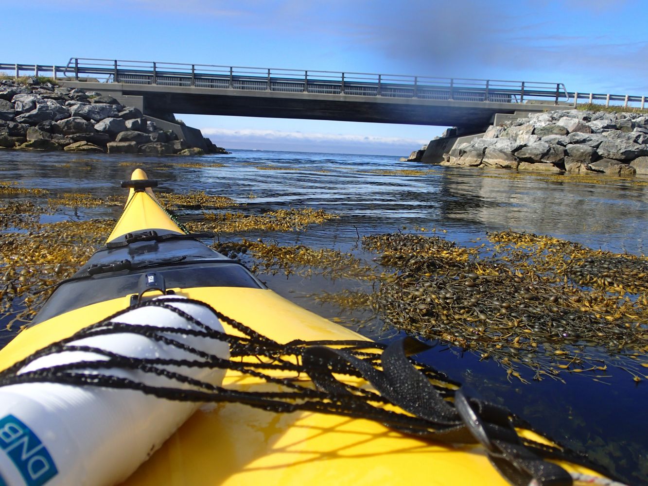Fra startpunktet padler du ut av havnebassenget til Gunnabuda. Så snart du har passert moloen setter du kurs mot NV i retning storhavet. Når innseilingen til Longva havn krysses må du være obs på eventuelle båter som går inn og ut av havnen. Vi følger fjorden i retning NV og sikter mot fiskemottaket Karsten Flem. Ved grovere sjø anbefales det å holde seg nærmere land. Når vi passerer fiskemottaket bør vi holde god avstand fra kaia slik at vi ikke havner under den. Deretter fortsetter vi i retning NV og velger den lave "Kukkelur-brua" som neste veipunkt. Navnet kommer fra kukkelurene (sneglene) som sitter på steinene under brua. På veien dit passerer vi de grunne Flem-bankane. Bruk litt tid på å studere livet på sandbunnen under din kajakk. "Kukkelur"-brua skiller den beskyttete fjorden fra storhavet. Dersom forholdene tillater det, kan du passere under brua inn til vika mellom Flem og Ullaholmen. Vika er fortsatt forholdsvis beskyttet men snart kjenner du havdønningene. Dersom du er heldig kan du observere sel som leker seg i det grunne vannet. Senest her har vi nådd snupunktet for denne turen, og følger samme veien tilbake til utsettingsstedet ved Gunnabuda på Longva. Ved gode forhold kan vi krysse fjorden over til Kroksholmene foran Haramsøya.Kroksholmene er en samling av holmer med smale passasjer i mellom som kan utforskes med kajakk.