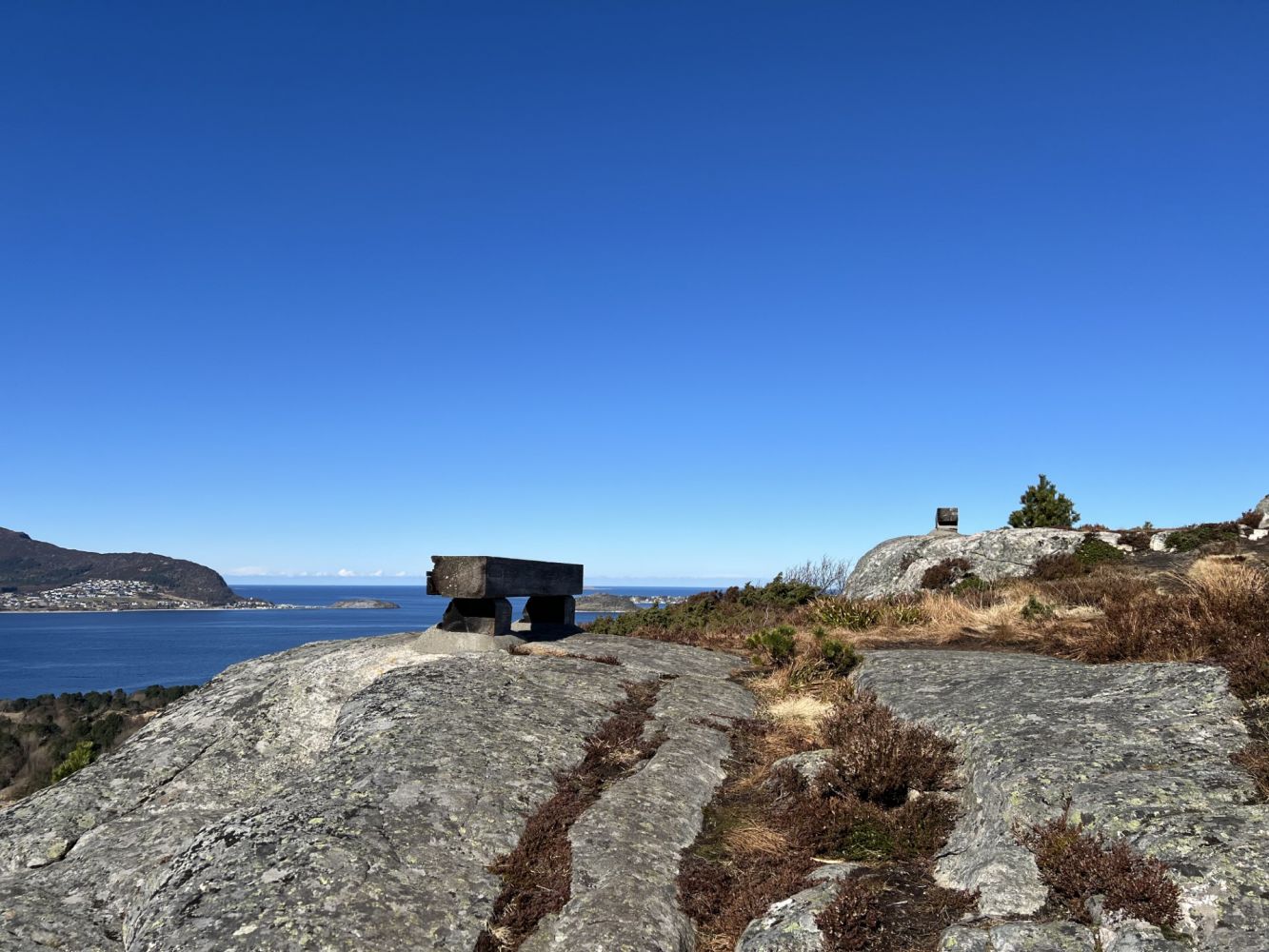 På toppen står det en flott varde med inskripsjonen: «Sunnmøringen ber stein medan han kviler».