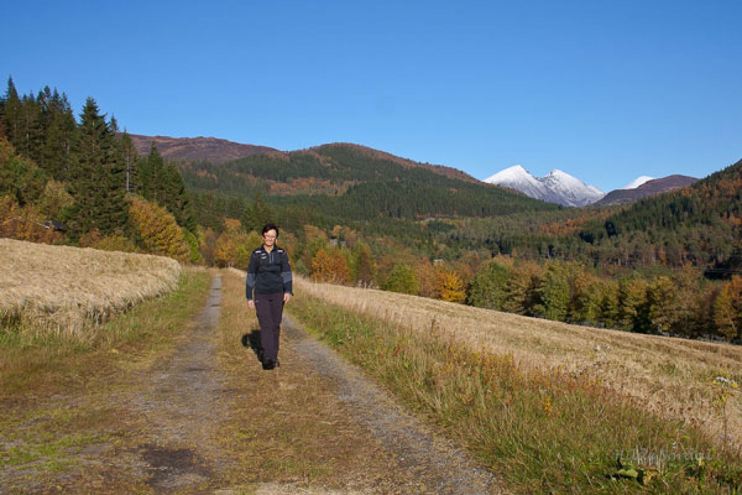 Start ved parkeringsplassen på Fjellstova på Ørskogfjellet, eller gå av bussen ved Fjellstova. Gå austover langs setervegen (bomveg) mot Haugsetra ca. 800 meter etter god grusveg. Ta av til høgre og følg god sti rett ned ei brei ”gate” gjennom lauvskogen til du når grusvegen til Kvanndalen. Fortset rett fram etter same vegen heilt til du møter Europavegen. Kryss Europavegen her og held fram gjennom stor granskog på brei, tydeleg sti. Det går nokre avstikkarar frå stien, men hald heile tida rett fram. Etter kvart skal du passere Tverrelva. Her er det bygd ei ny, god bru så det er trygt å kome over. Du kjem etterkvart til eit steinbrot på venstre side. Ver oppmerksom; kanten er ikkje sikra. Gå vidare og kryss eit gjerde. Der gjer vegen ein sving til venstre før han igjen held fram i same retning som før. Postvegen går nesten ned til Europavegen like etterpå, der er stien ganske smal eit lite stykke før han igjen er brei og fin. Stien går like ved sida av Europavegen ned til Gjærsleet og over markane på Gjære. Vi kjem ned i boligfeltet Pina og går gamlevegen nedover Lande. Gå undergangen ved Steinholt og gå gangbrua over elva. Følg merka turveg Elvastien ned til kyrkja. Denne turvegen ligg berre delvis på same trasé som den gamle Postvegen.