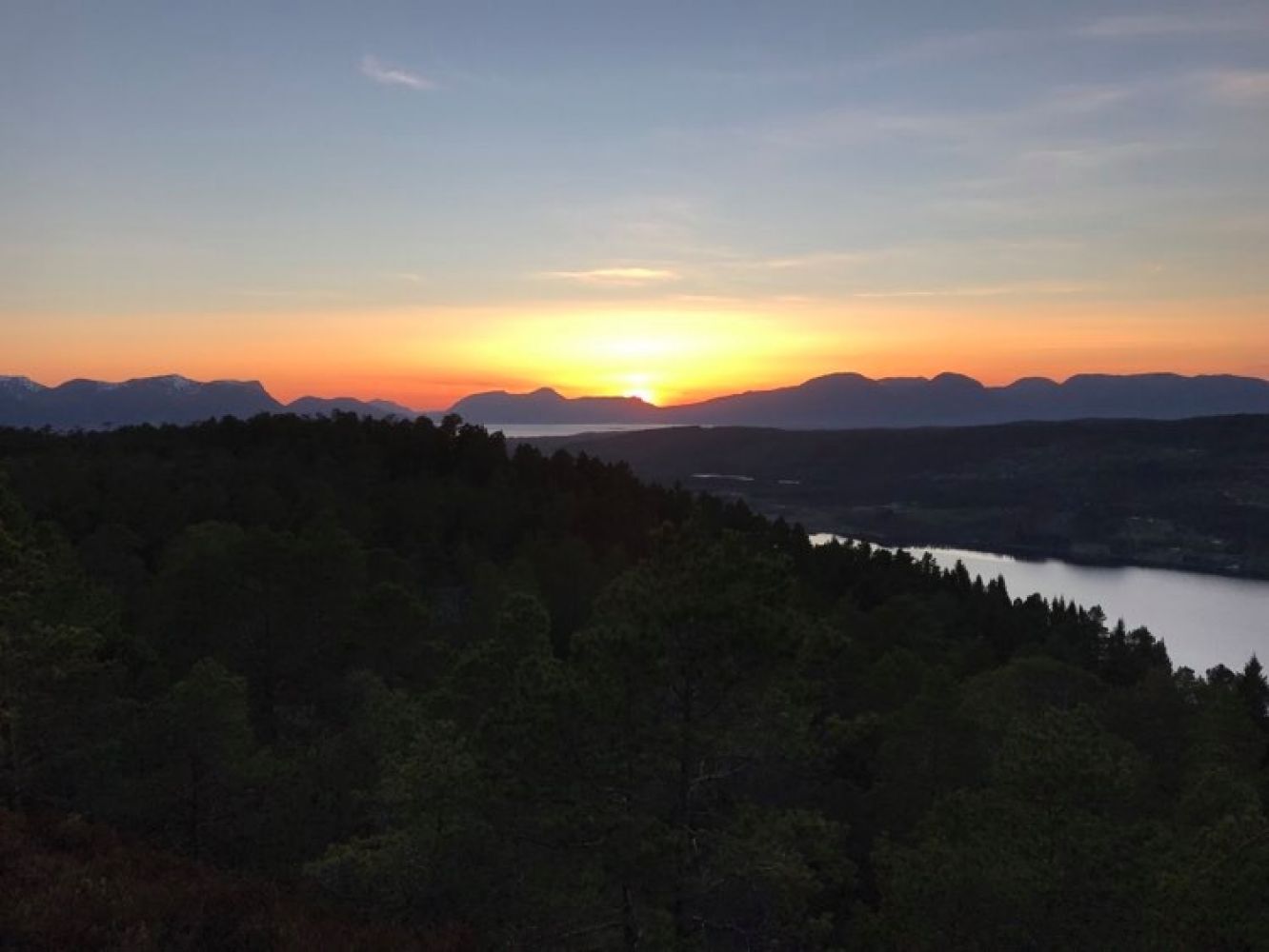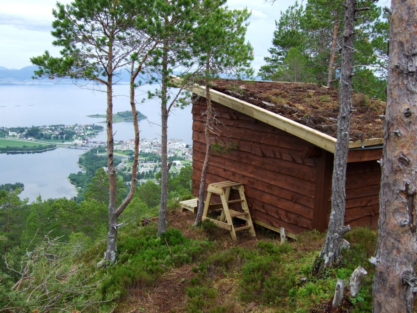 Følg vidare kloppene over myra, og stien vidare opp i skogen. Her er det delvis bratt terreng opp mot toppen, men ingen luftige parti, og det er god sti. På toppen har frivillige bygd opp ein kjempefin gapahuk, og der er bålpanne og benkar som alle kan benytte - så her ligg det godt til rette for ei god pause der du kan nyte den flotte utsikta!