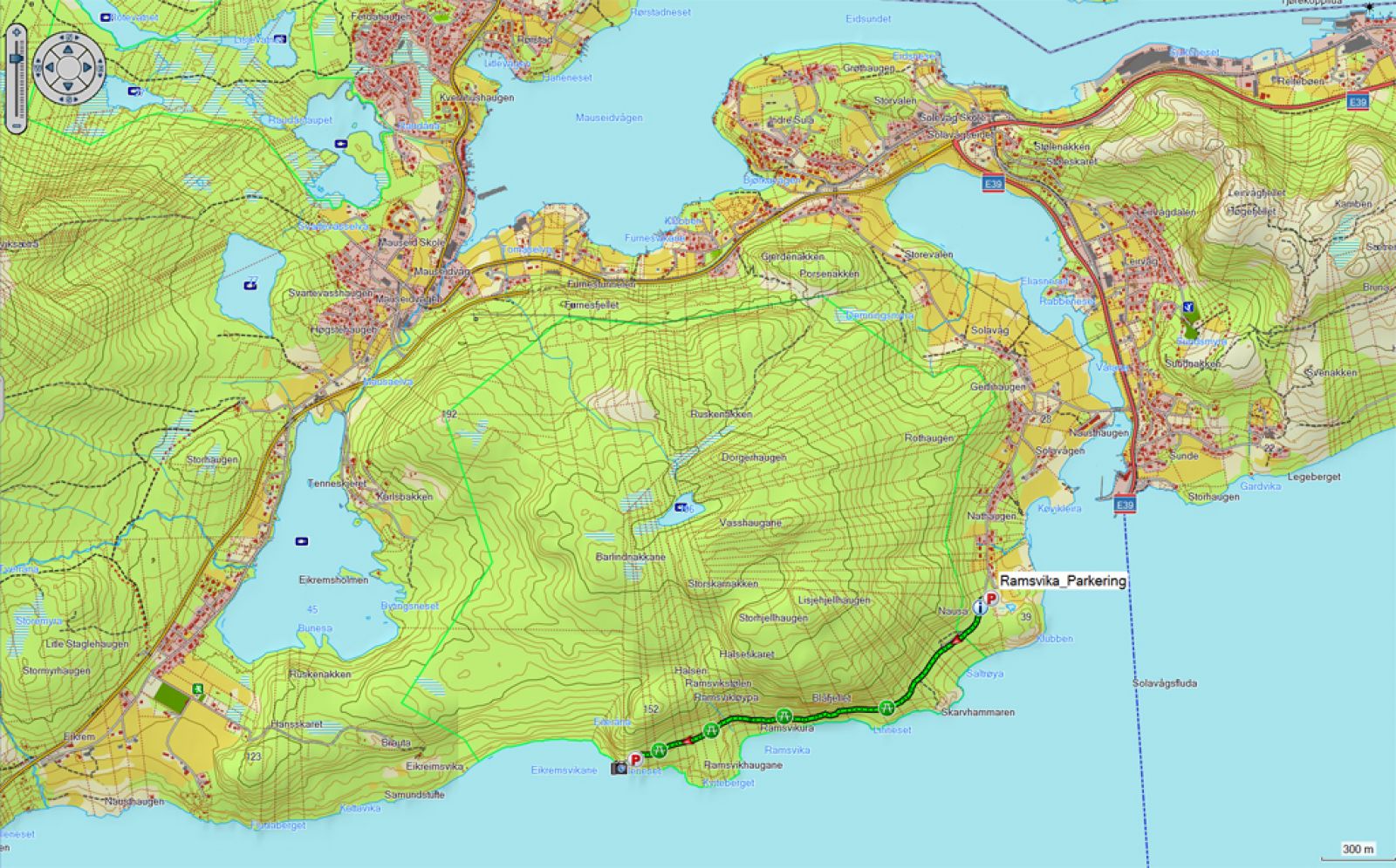 Dette er ein fin tur på traktorveg og med lite stigning. Det er skilta enkelte avstikkarar ned til sjøen om ein vil ned å fiske eller bade. Traktorvegen vert ikkje brøyta vinterstid.