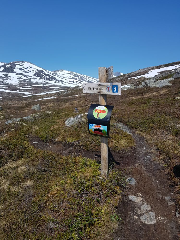Turen går langs nordsiden av vannet, til høyre for parkeringsplassen. Turistforeningen har gjort en flott jobb med merking av stien. Følg rød T helt frem til postkassen. Stikk UT! postkassen er plassert der stien deler seg mot Brandstadbu og Reinvassbu. Ca 3 km fra parkeringsplasen. Terrenget er forholdsvis flatt med god utsikt over flotte fjell og Reinsvatnet hele veien.