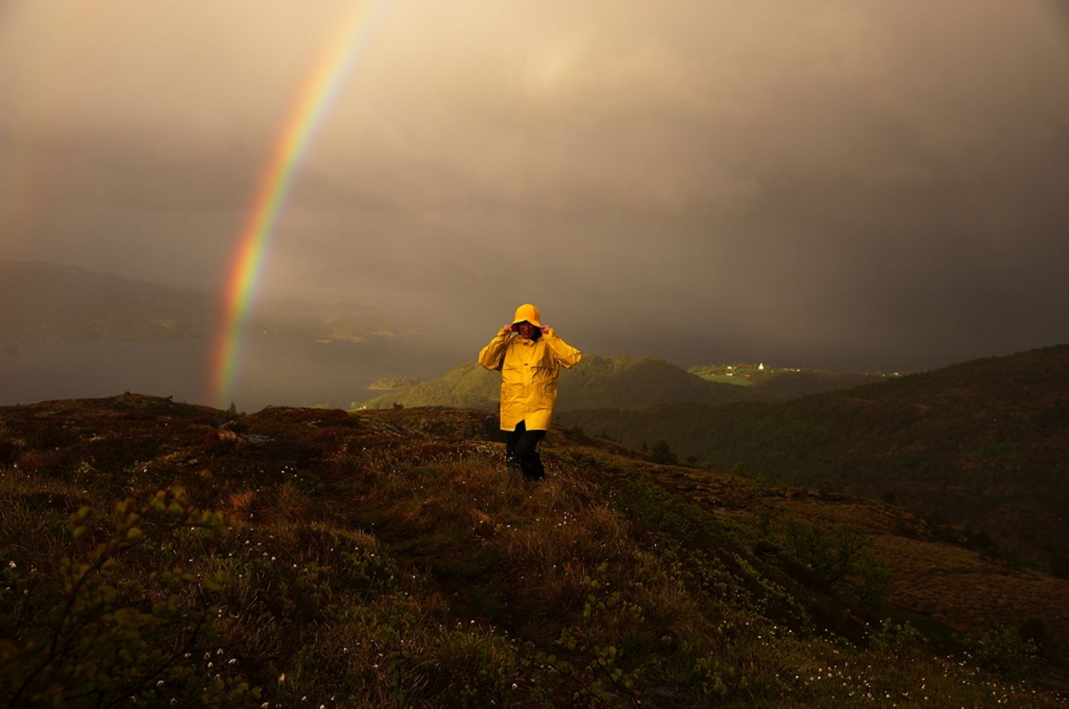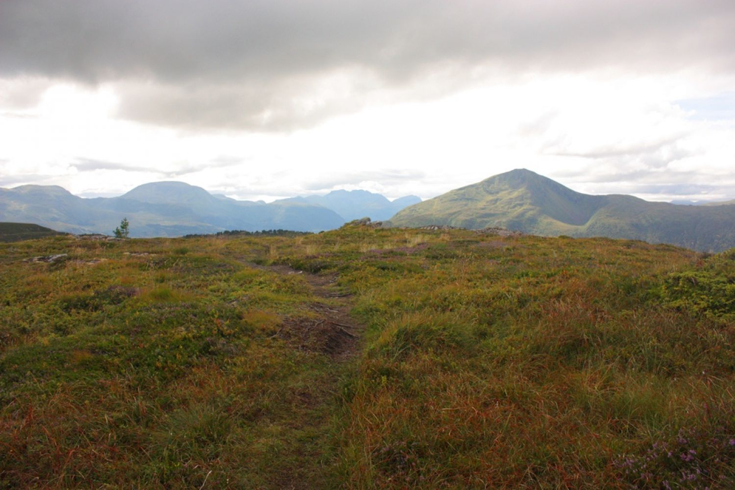 Fra toppen går det flere stier. Du skal i retning med Meekknoken foran deg. Det er stien som går til høyre. Tar du til venstre går den ned mot Kvernes. Følg god sti nedover til du kommer på vei igjen.