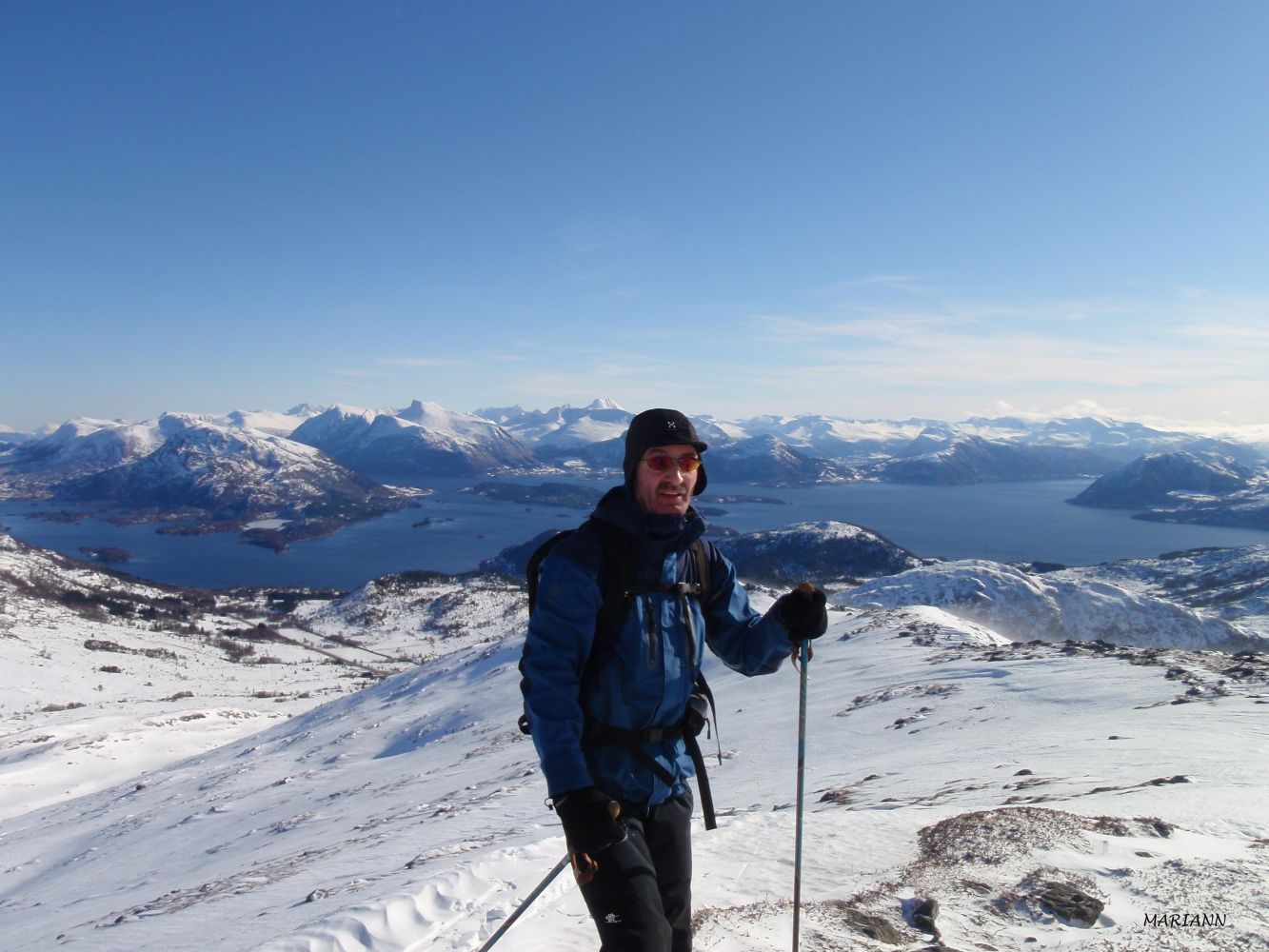 Flott utsikt over ytre søre og Sunnmørsalpane. Røddalshornet er vel den toppen i Sande der du kan gå på ski lengst utover våren, då der ligg snø lenge på nordsida. Gurskøy I.L. har trimpost på Røddalshornet. På kartet står Røddalshornet avmerka på ein topp (Herda) som ligg vestapå på det verkelege Røddalshornet.