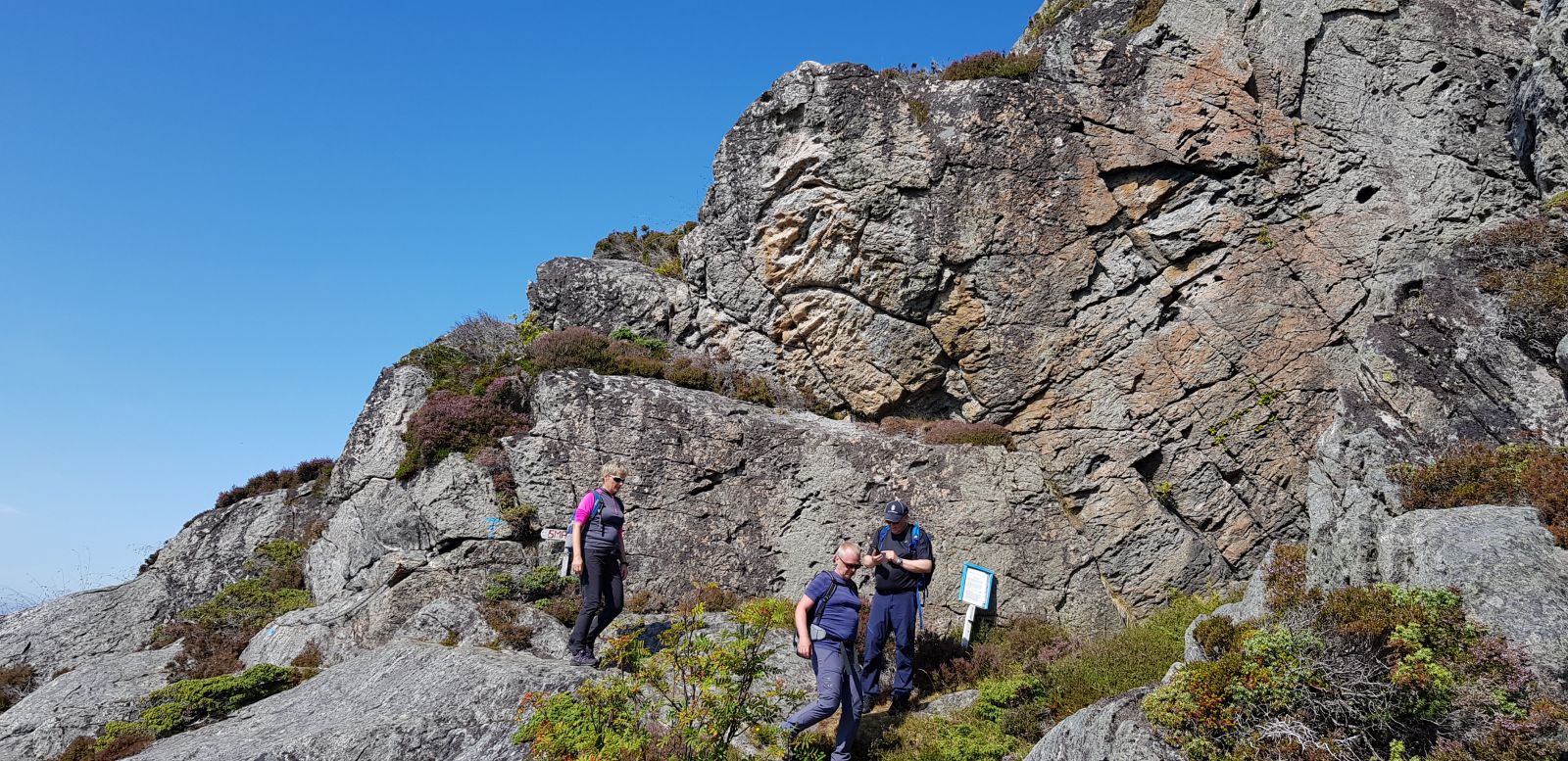 Frå parkeringsplassen på Rønstad går ein på godt merka rås gjennom grasmark som snart går over til svaberg. Heile turstien går i småkupert terreng, og er merka med blå pinnar og T-ar på steinar.