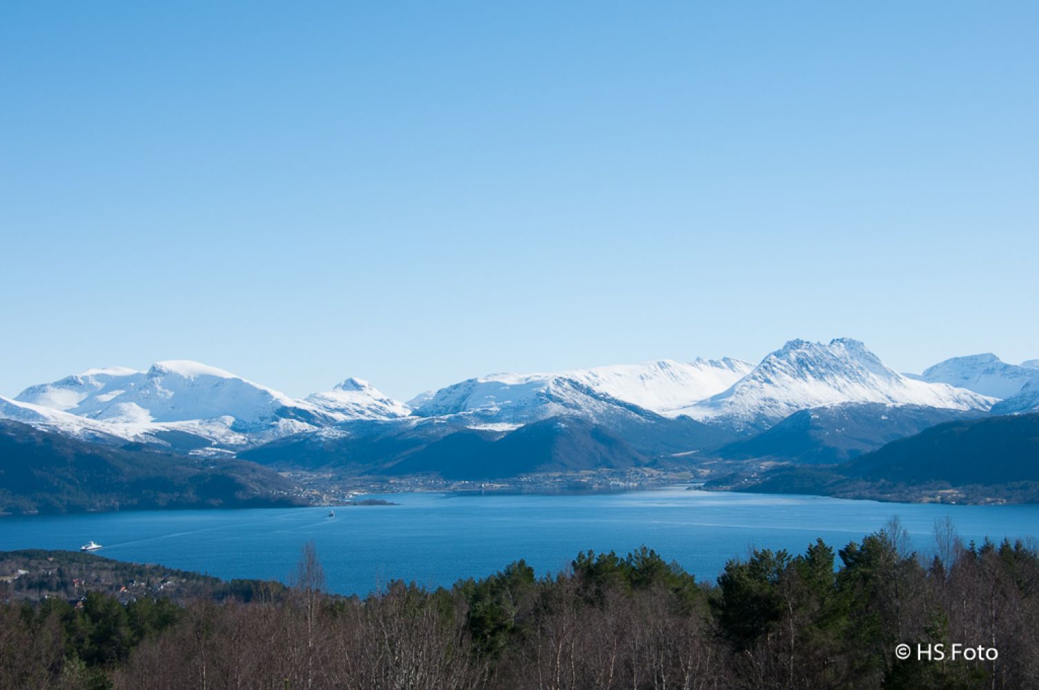 Ca. 450 meter etter krysset mot Ivar Aasen-hytta kommer du til et flott utsiktspunkt. Her er det en stol, benker og et bord.