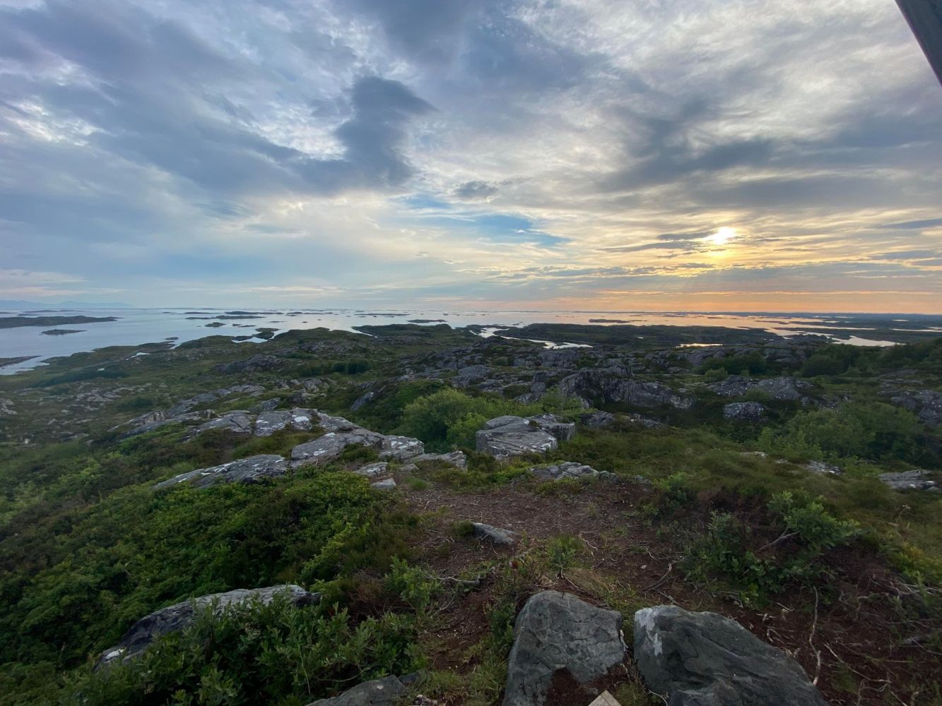 Vel oppe på haugen finner du gapahuken og et flott skue ut over Sør-Smøla landskapsvernområde. Fjella, sjøen og den flate Smøla utover mot havet, er også en flott opplevelse.